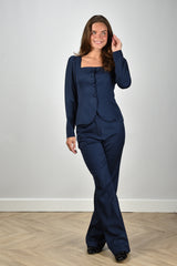 Our model Lise is 1,73m and Lise heeft maat 36/S/27. deze broek valt normaal op maat