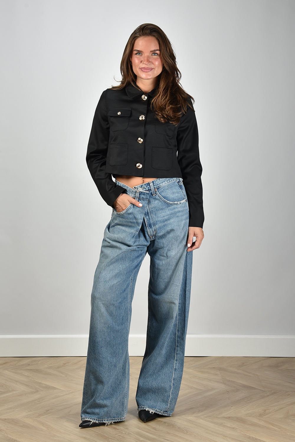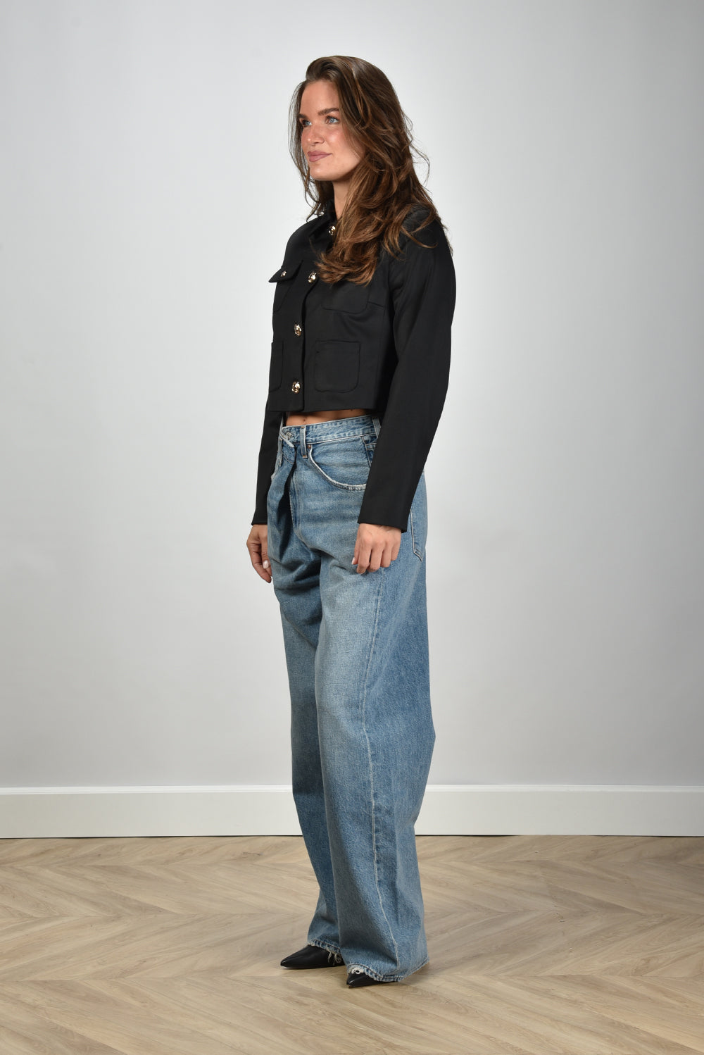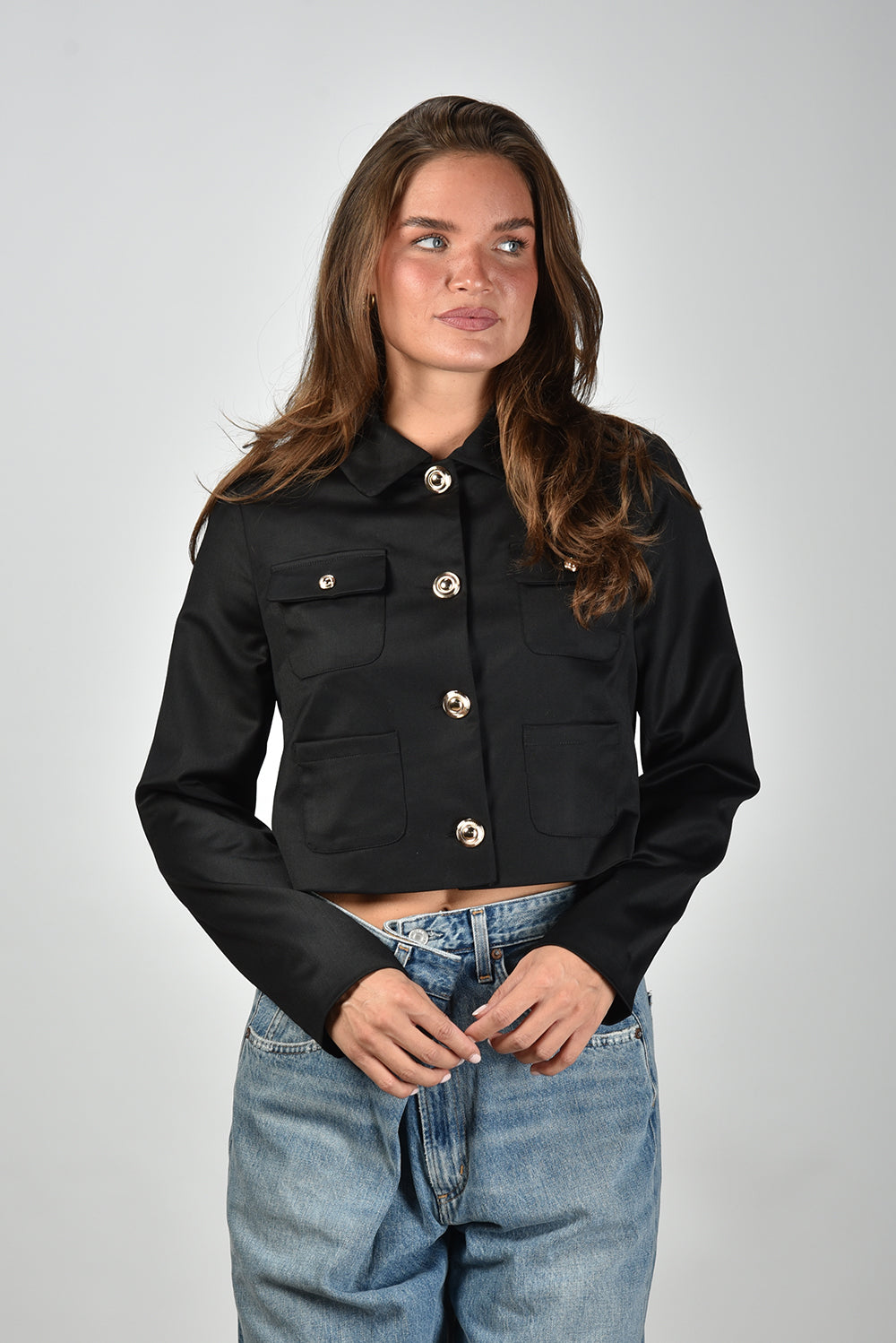 Sage & Ivy jack Cornelia met meerdere zakken en gouden knoopsluiting zwart
