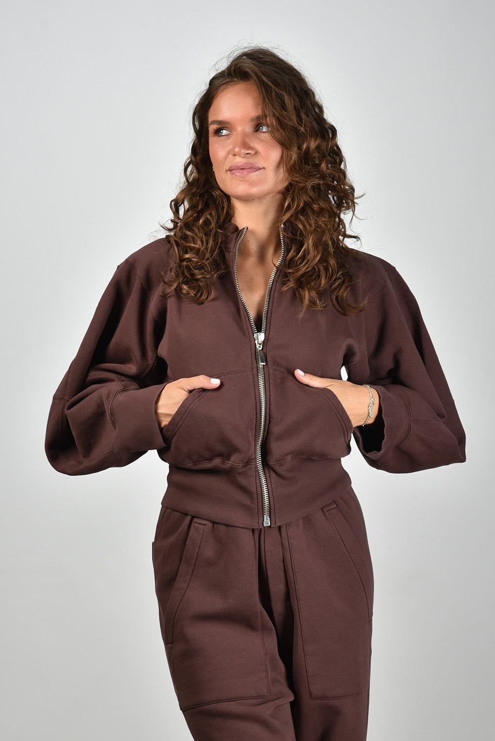 Sea Me Happy trui Cobra Zip met pofmouw bruin