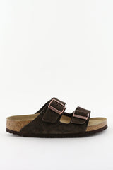 Birkenstock sandalen Arizona met gespen in suede bruin