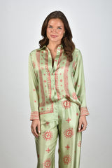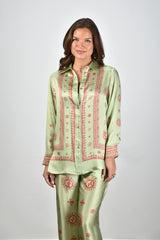Here you see the AVDW blouse Bali green, made of 100% silk for a luxurious look. This model offers a regular fit and is ideal for various occasions. Lise wears size M with a height of 1.73m. For long-term preservation we recommend dry cleaning. Article number: 001 BALI SHIRT.