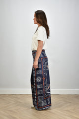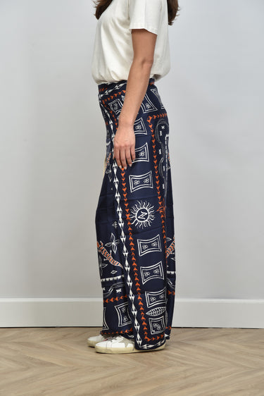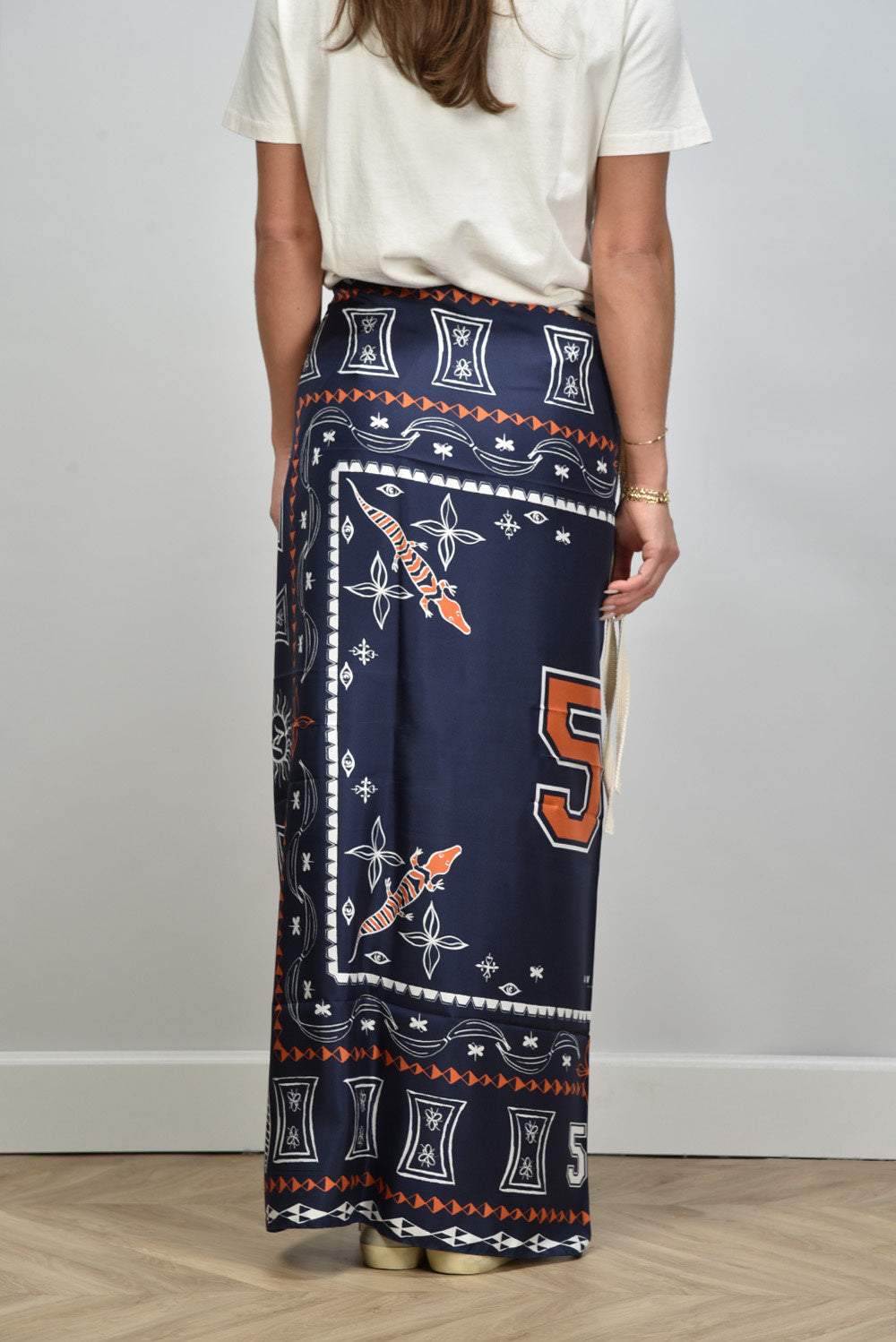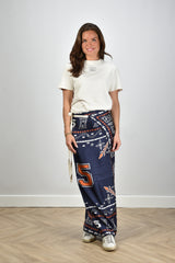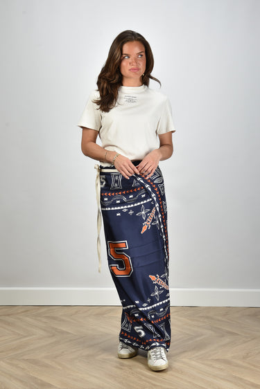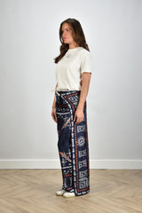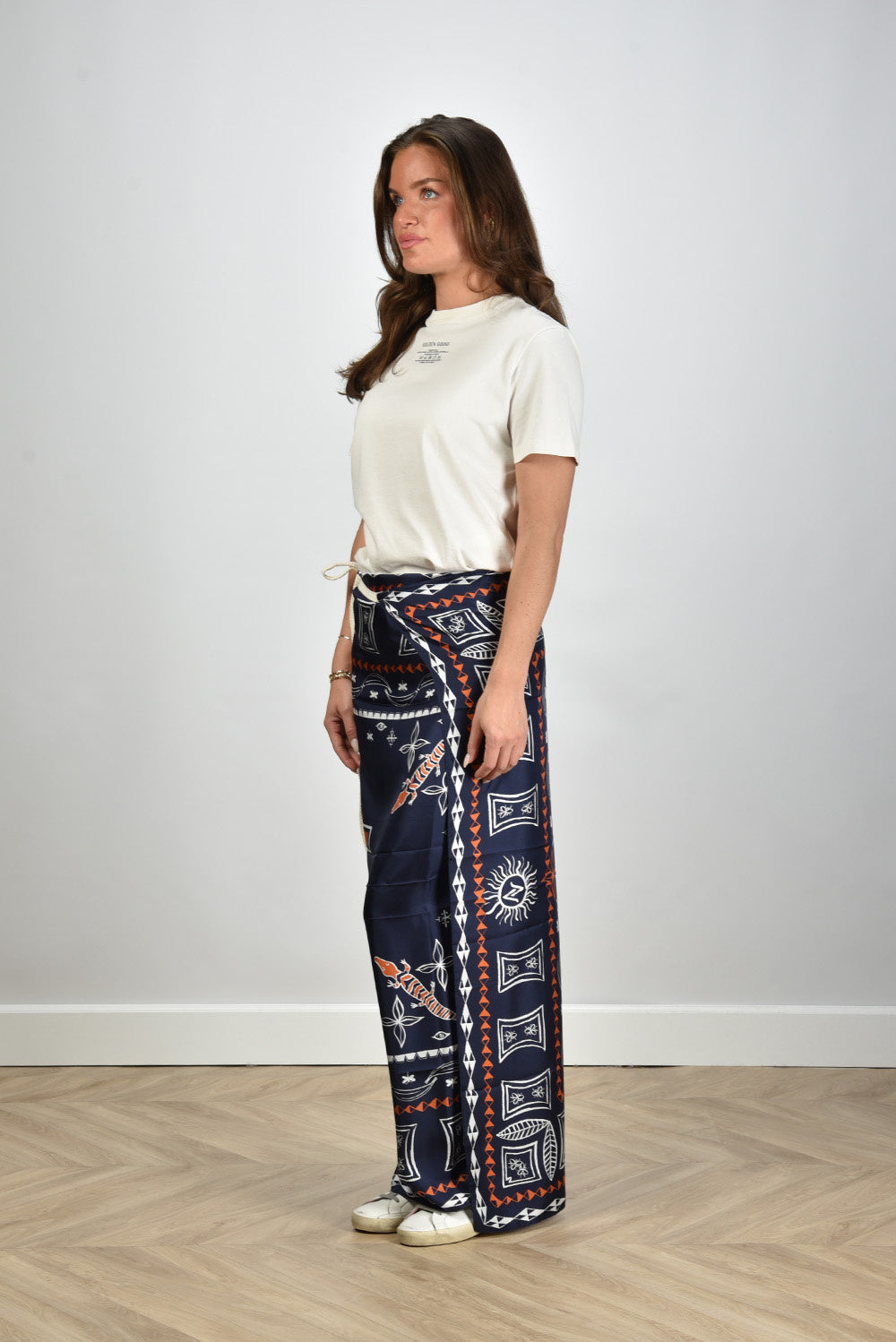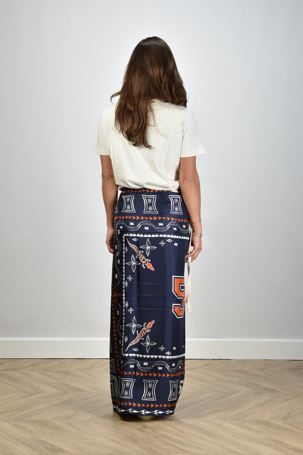 Here is the AVDW pareo Angel in an elegant navy shade. This versatile skirt, made of 100% silk, offers a regular fit and is ideal for both beach days and casual outings. Model Lise (1.73m) wears size M. Article number: Angel.