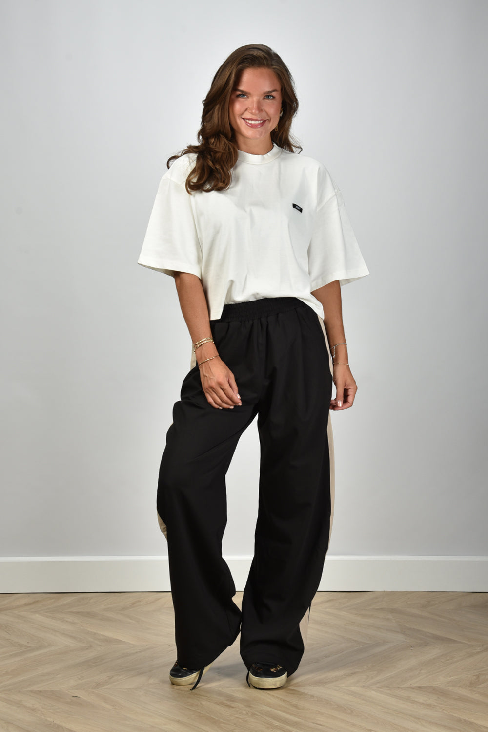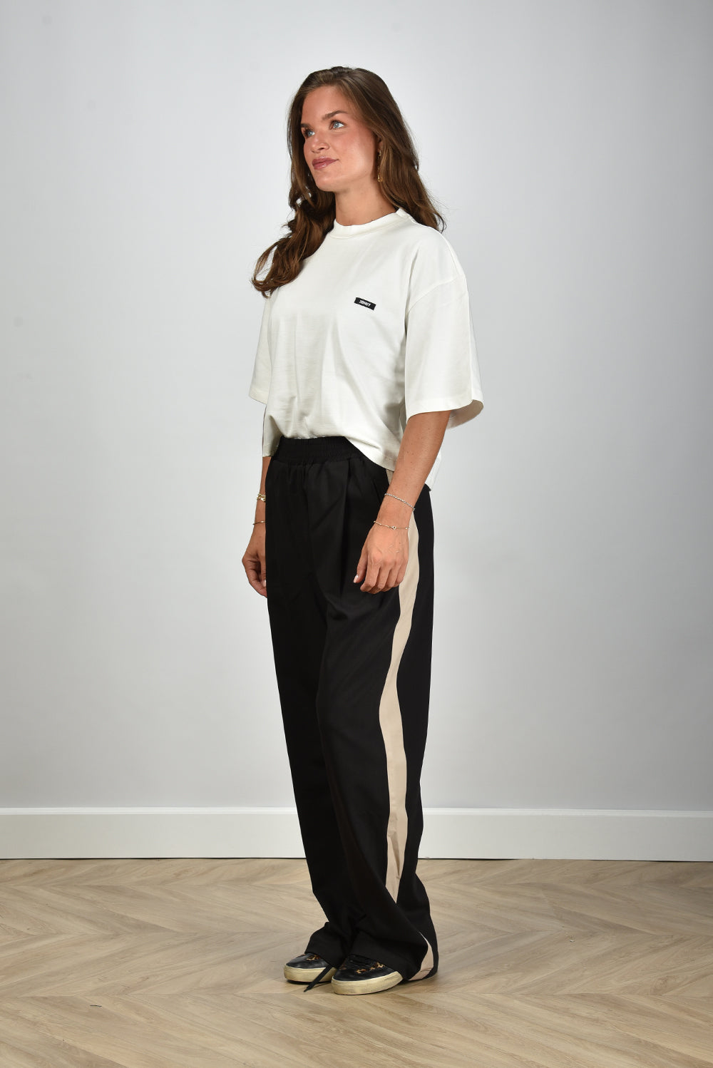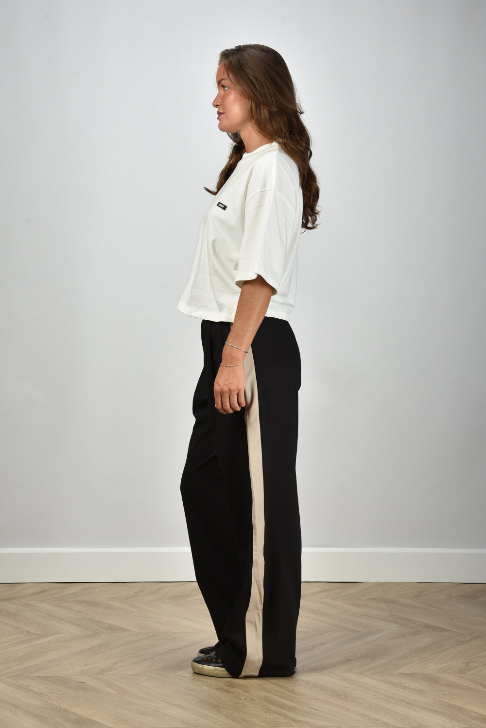 JOHNY broek relaxed model Ayo met witte streep zwart