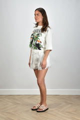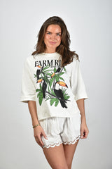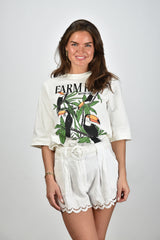 Farm Rio t-shirt with bird print cream