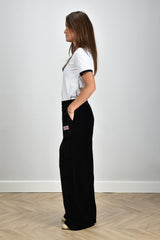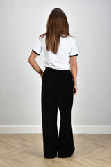 Here are the Ganni trousers T4116 black, a refined choice for any wardrobe. These trousers are made of 83% cotton and 17% polyester, which ensures comfort and durability. The model has a regular fit and fits perfectly with various styles. Article number: T4116-099-Black.
