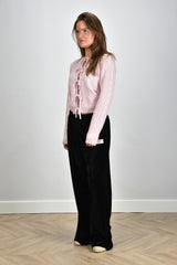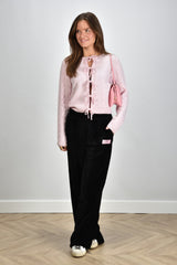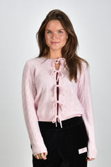 Here is the Ganni cardigan pink, model K2415-494-Mauve Chalk. This elegant cardigan in mauve chalk offers a regular fit and is designed for versatility and comfort. Lise wears size 38/M/28 and is 1.73m tall. Perfect for any occasion.