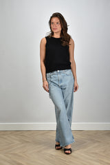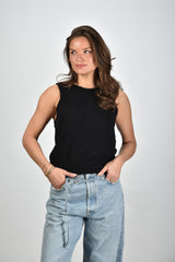 Here you see the RÓHE top black by Rohe, made of 100% cotton for a luxurious look. This garment offers a regular fit and is ideal for various occasions. Lise wears size 38/M/28 and has a height of 1.73m. Article number: 615-23-338-001_308-Black.