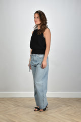 Our model Lise is 1.73m and Lise has size 38/M/28. This product has a regular fit.