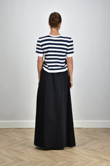 Here you see the Sage & Ivy skirt Sonja in Navy, made of 100% cotton. This elegant skirt offers a regular fit and is ideal for various occasions. Lise wears size 38/M/28 and is 1.73m tall. Washable at 30°. Article number: SONJA-025-Navy.