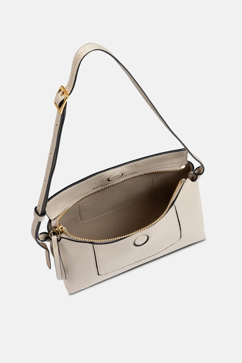 Here is the Wandler crossbody Penelope Slouch Mini in Beige Crust. This bag combines elegance with functionality, made of high-quality material and offers a refined look. With dimensions of 13.5 x 19.5 x 7 cm it is ideal for everyday use. Article number: 000154-5721-Beige Crust.