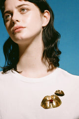 Wouters & Hendrix brooch Lip Brooch with Garnet gold-plated silver