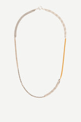 Here you see the Wouters & Hendrix Chapters necklace, a refined piece of jewelry made of sterling silver and plated with gold. The mix of colors such as gold/rose/bronze and silver provides a versatile look. An elegant accessory that completes every outfit. Article number: NSC091-Mix-NOOS
