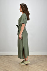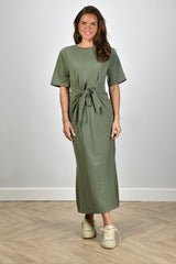 Here you see the Xirena dress Tianna in Vintage Seagrass. This elegant dress, made of 100% cotton, offers a regular fit and is ideal for various occasions. Cold wash recommended to maintain quality. Model Lise wears size M with a height of 1.73m. Article number: Tianna.
