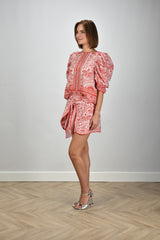 Our model Esmee is 1,74m and Esmee heeft maat 36/S/25. Deze blouse heeft een normale pasvorm