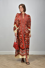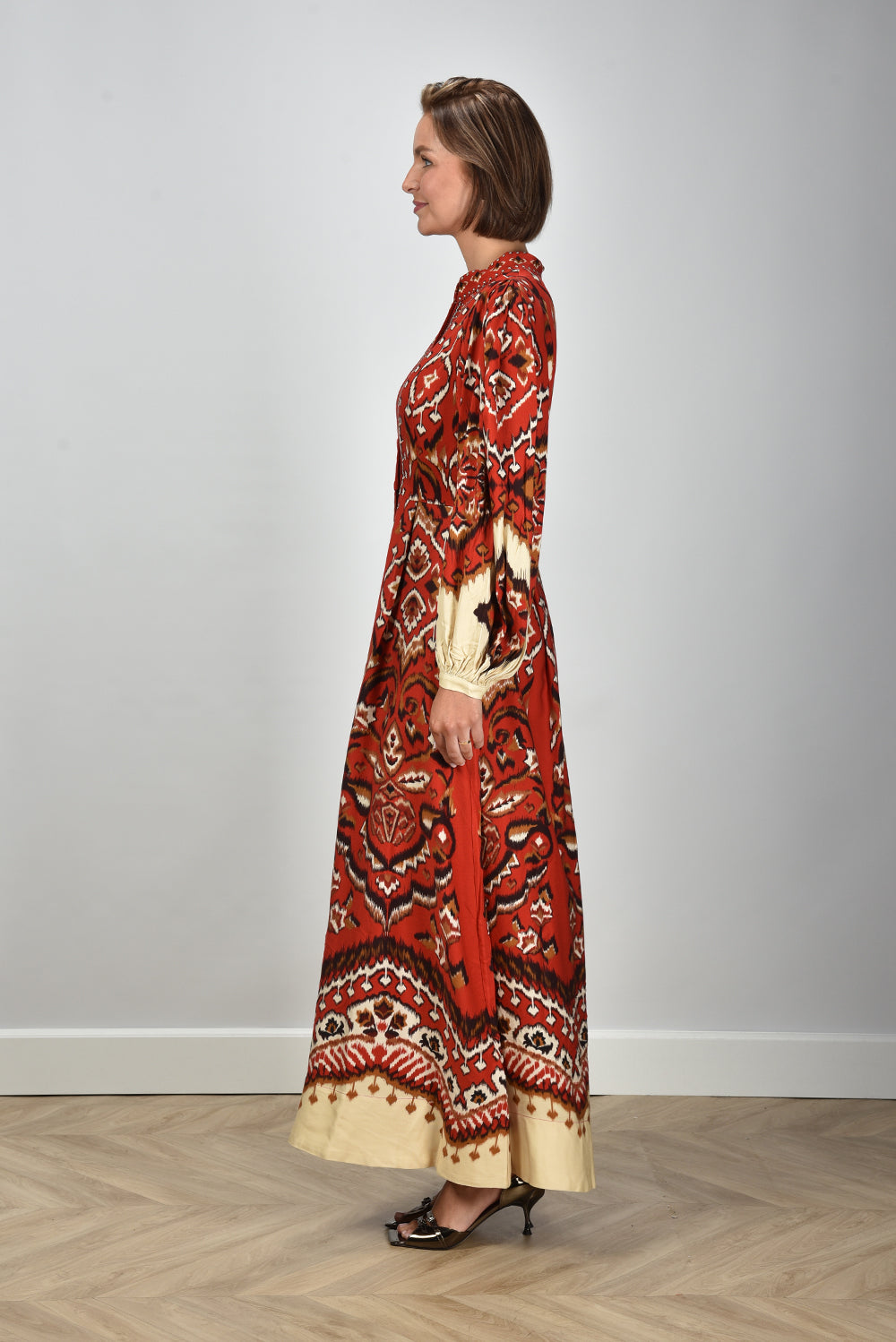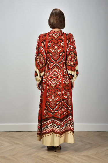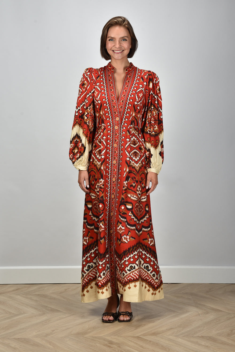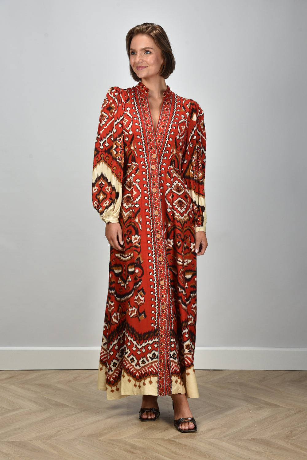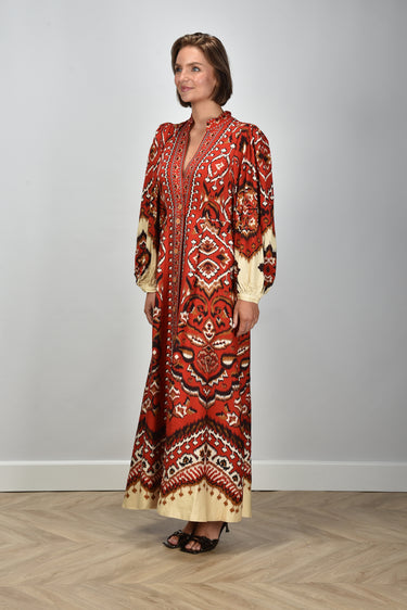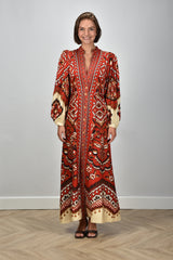 Farm Rio maxi-jurk 339937 met lange mouwen en v-hals rood