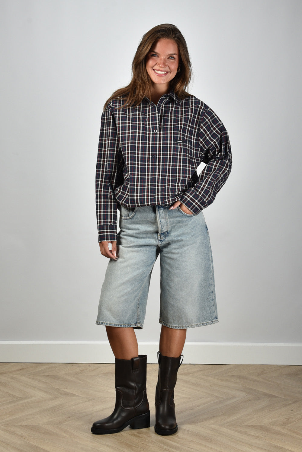 Our model Lise is 1,73m and Lise heeft maat 36/S/27. Dit short valt normaal op maat