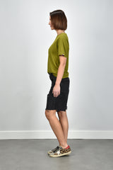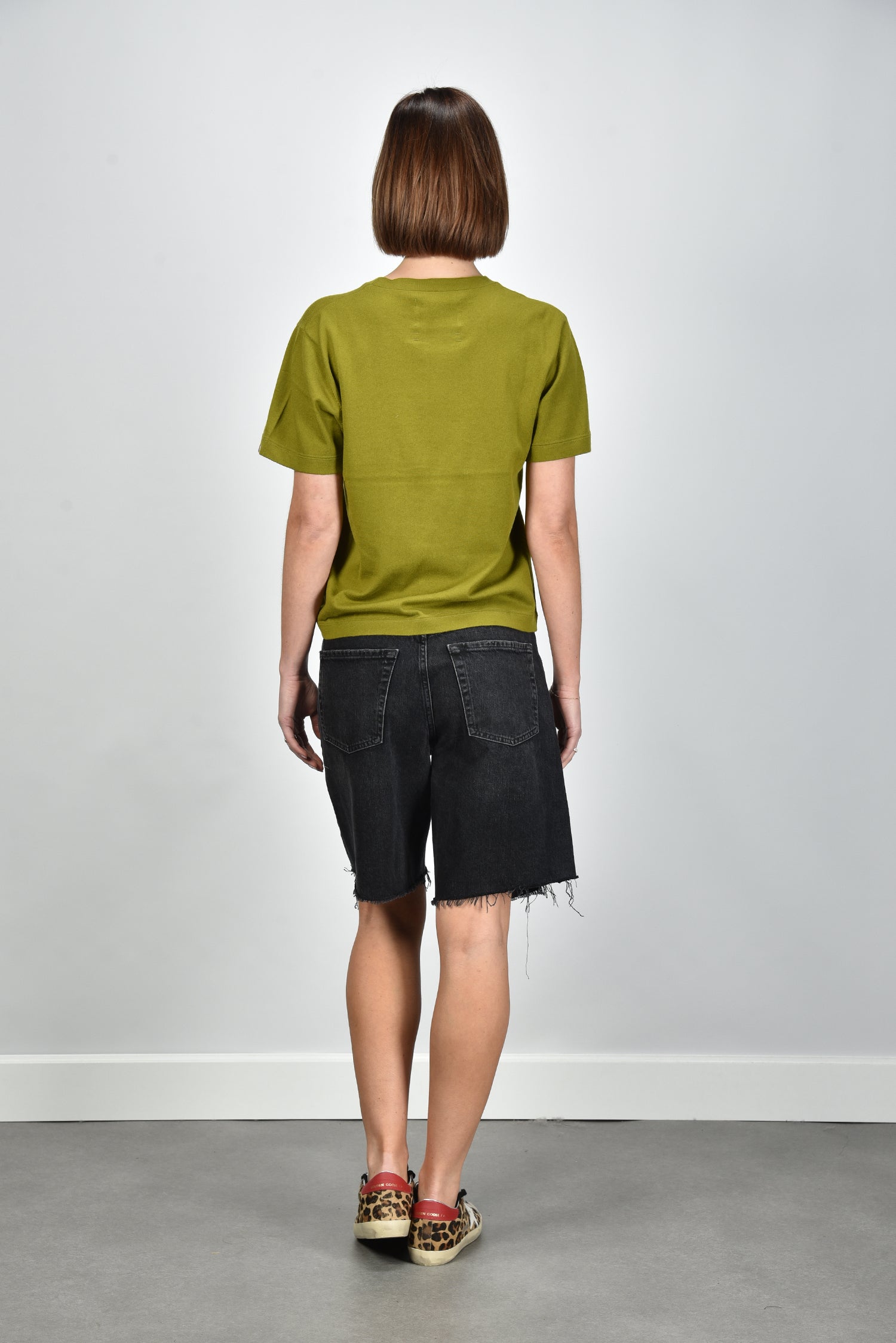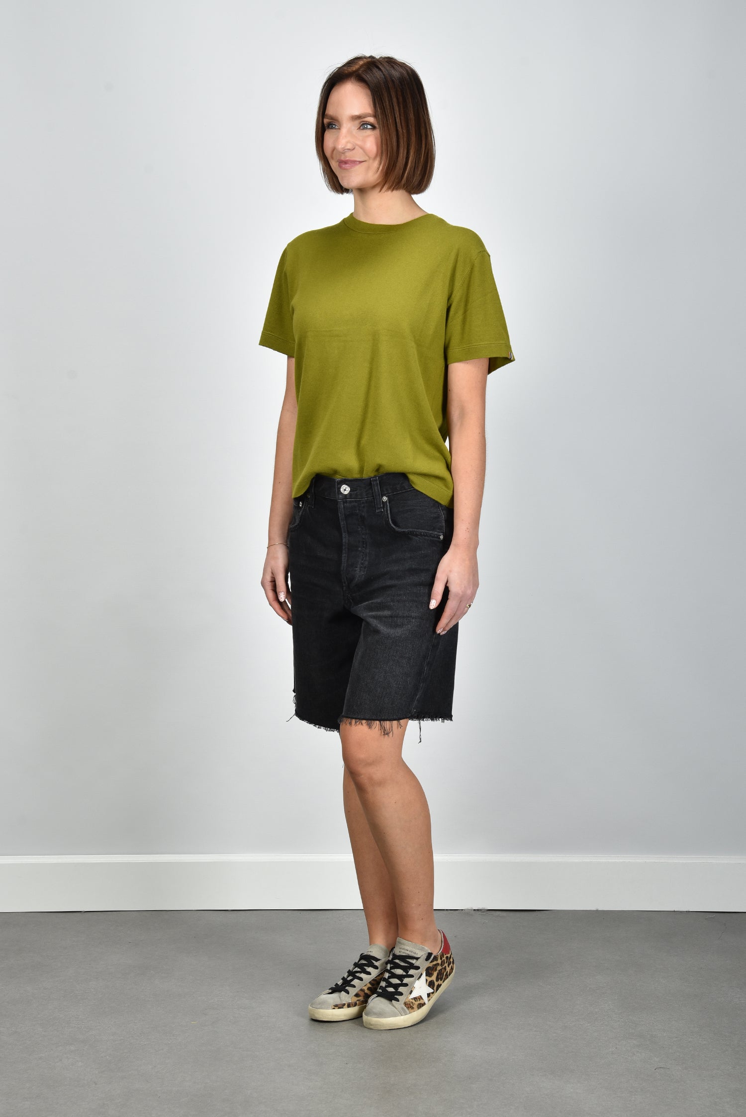 Het cashmere t shirt Cuba grass van Extreme Cashmere voelt direct bijzonder aan. De mix van katoen en kasjmier geeft het shirt een soepele, zachte structuur met een lichte luxe touch. De kleur grass is fris en helder, ideaal voor een zomerse dag of als opvallend accent onder een blazer. De korte, recht afgesneden mouwen en de losse pasvorm zorgen voor een ontspannen silhouet dat mooi valt zonder te wijd te zijn. Op de mouw zit een subtiel label met strepen, een herkenbaar detail van Extreme Cashmere. Mooi te dragen met de Golden Goose sneakers Superstar leopard voor een nonchalante, maar verzorgde look. Dit shirt valt normaal op maat.