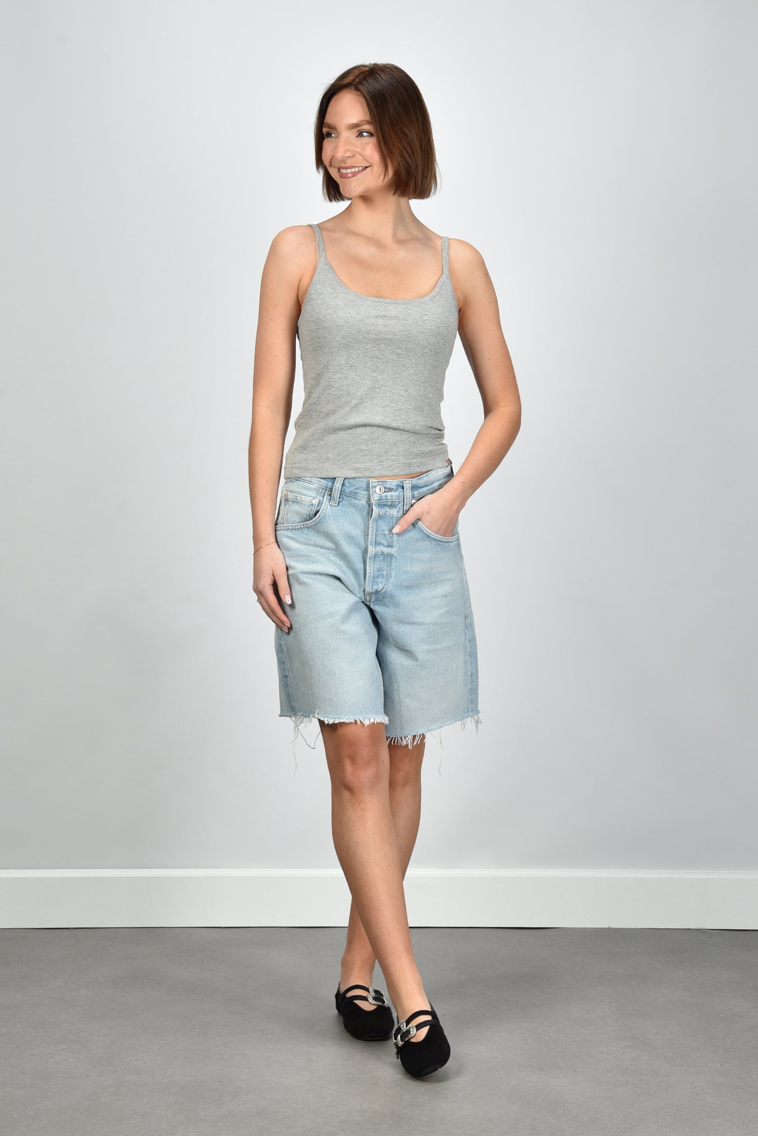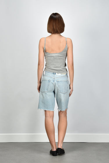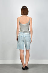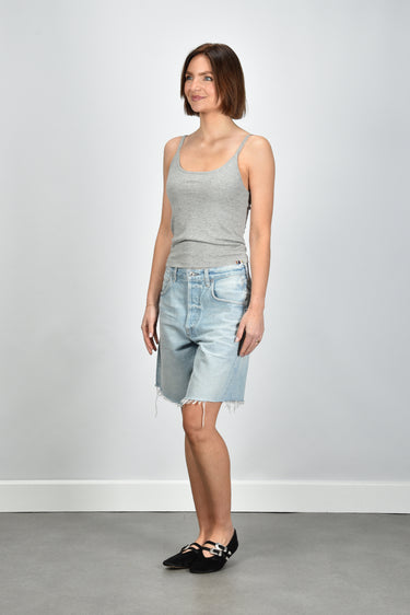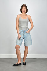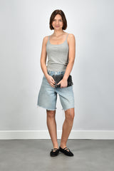 De cashmere top Britney grey van Extreme Cashmere is zo’n item dat direct stijl laat zien zonder extra inspanning. De lichtgrijze kleur benadrukt de zachte, luxueuze stof. Het materiaal, een mix van katoen en cashmere, voelt soepel en licht aan op de huid. De top heeft dunne schouderbandjes en een aangesloten, iets cropped model dat mooi boven een hoge taille valt. Combineer hem met de Citizens of Humanity short Ayla bianca voor een ontspannen zomerse set. Deze top valt normaal op maat en vormt een subtiele basis binnen de collectie van Extreme Cashmere, waar eenvoud en kwaliteit samenkomen in elk detail.
