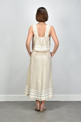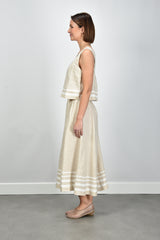 De top Leni van Xirena voelt direct prettig aan. De lichte katoenen stof valt soepel en luchtig op de huid. Het boxy model met ronde hals en contrasterende biezen geeft deze beige tint, of zoals Xirena het noemt winds linen, een frisse twist. De dubbele horizontale strepen onderaan zorgen voor een speelse balans in het ontwerp. Deze mouwloze top heeft een losse, iets kortere pasvorm die mooi staat op een hoge broek of korte rok. Combineer de Leni top eens met de Lola Cruz ballerina’s in nude voor een zomerse set met net dat beetje extra. Xirena staat bekend om luchtige essentials met een ontspannen pasvorm en die soepele katoenen kwaliteit voel je ook hier terug.