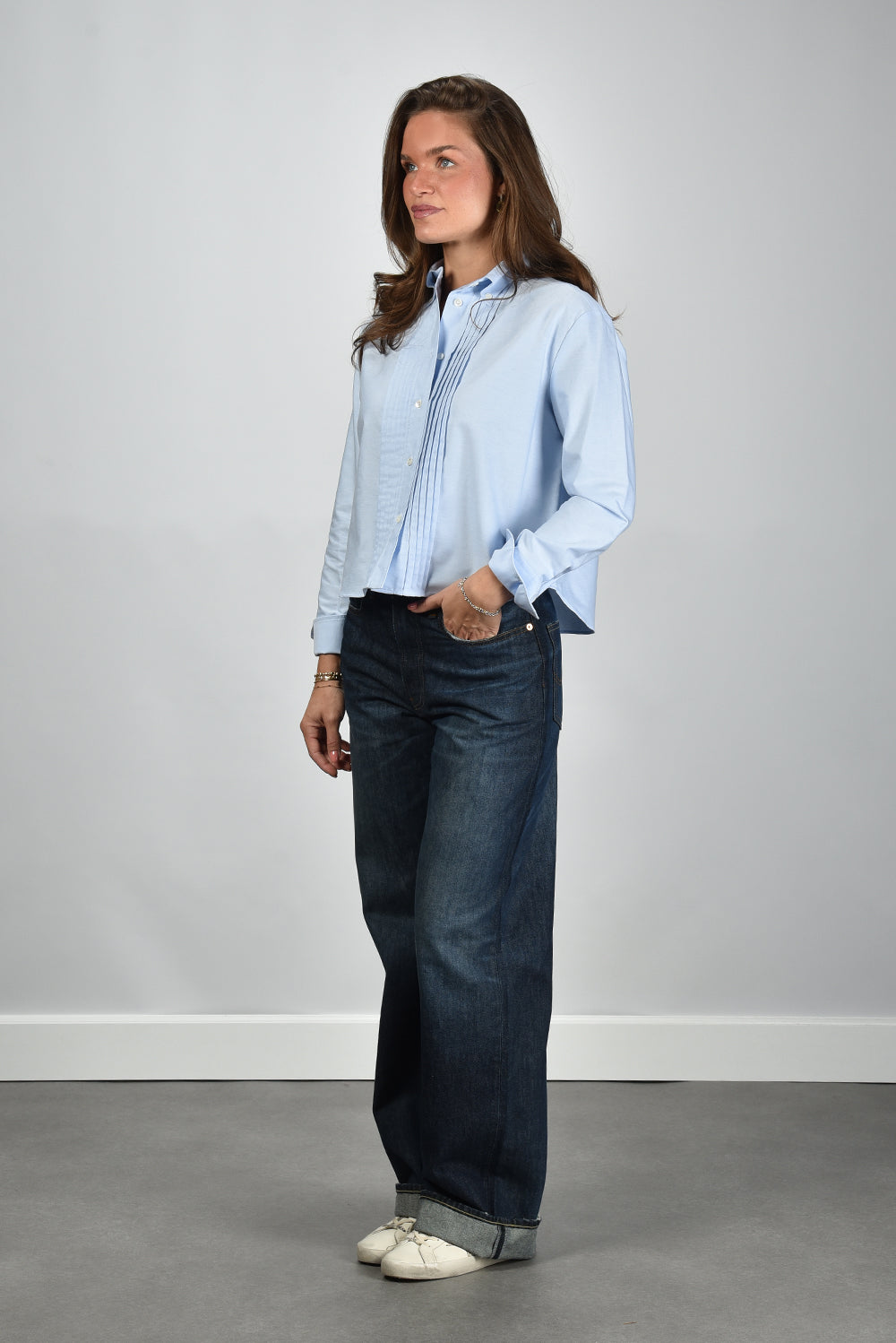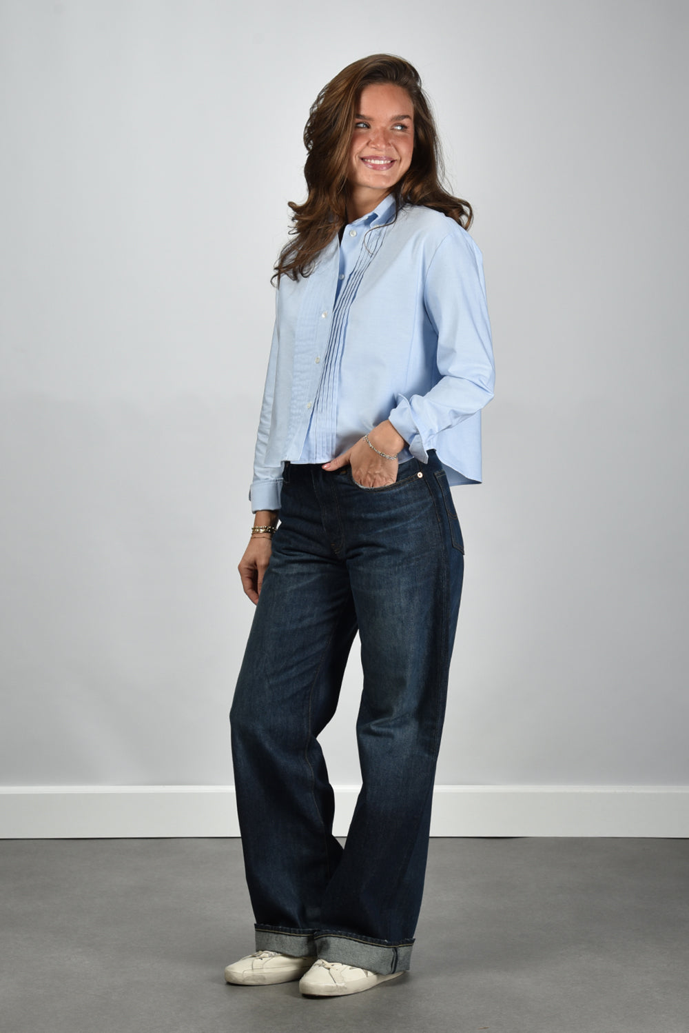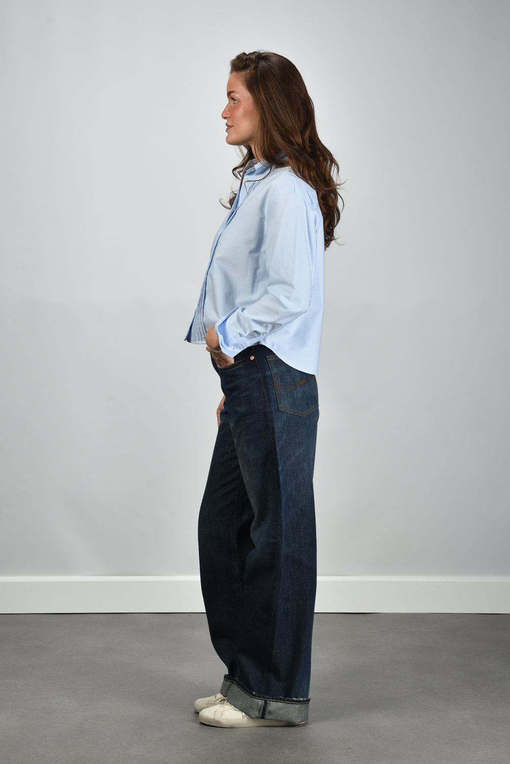 Behold the Academia blouse Miuccia blue, a refined choice for any wardrobe. Made from 100% cotton and designed with a regular fit. Lise wears size 38/M/28 and is 1.73m tall. Supplier colour: Unito Celeste. Washing instructions: 30°. Article number: 73D3-620-Unito Celeste.