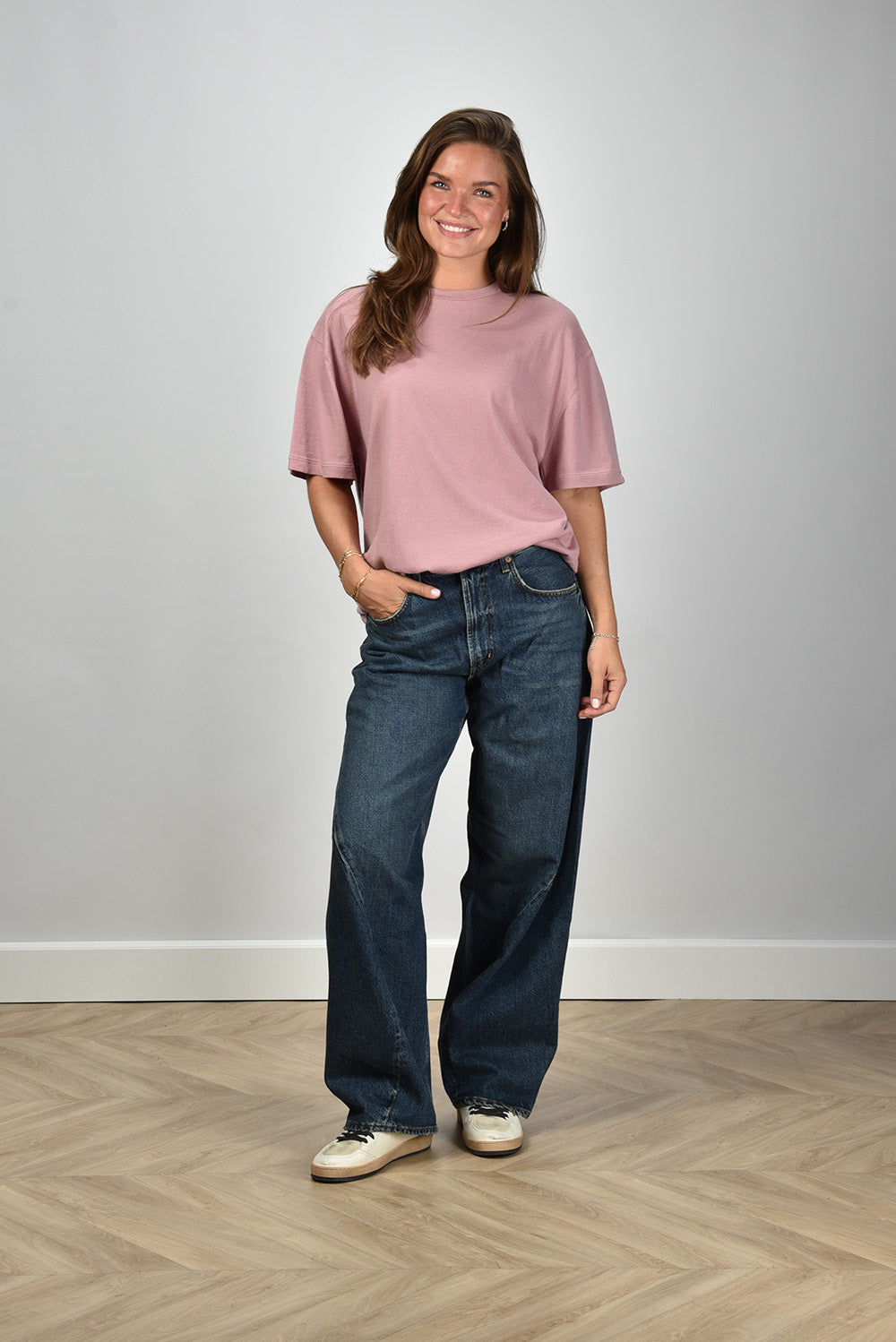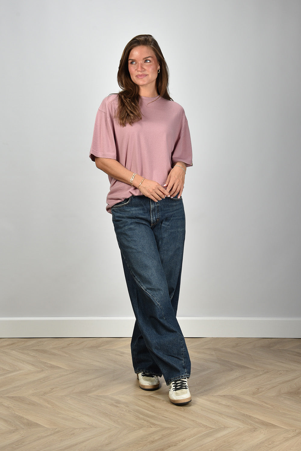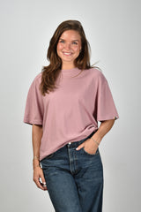 Our model Lise is 1,73m and Lise heeft maat 36/S/27. Dit T-shirt heeft een one-size pasvorm