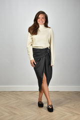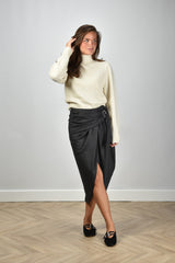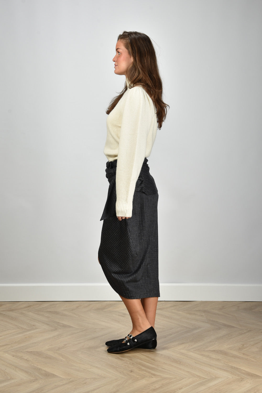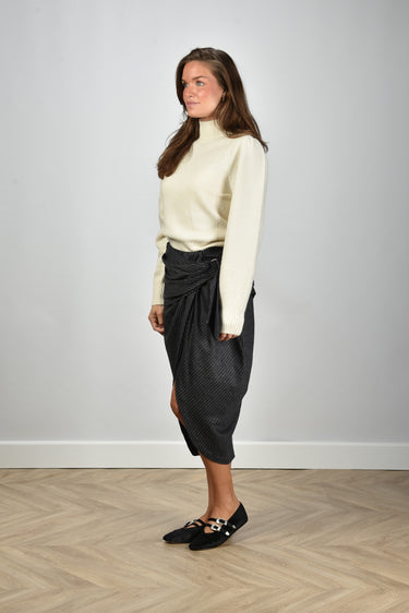 Our model Lise is 1,73m and Lise heeft maat 36/S/27. Deze rok valt normaal naar maat