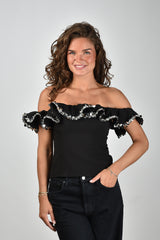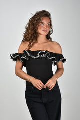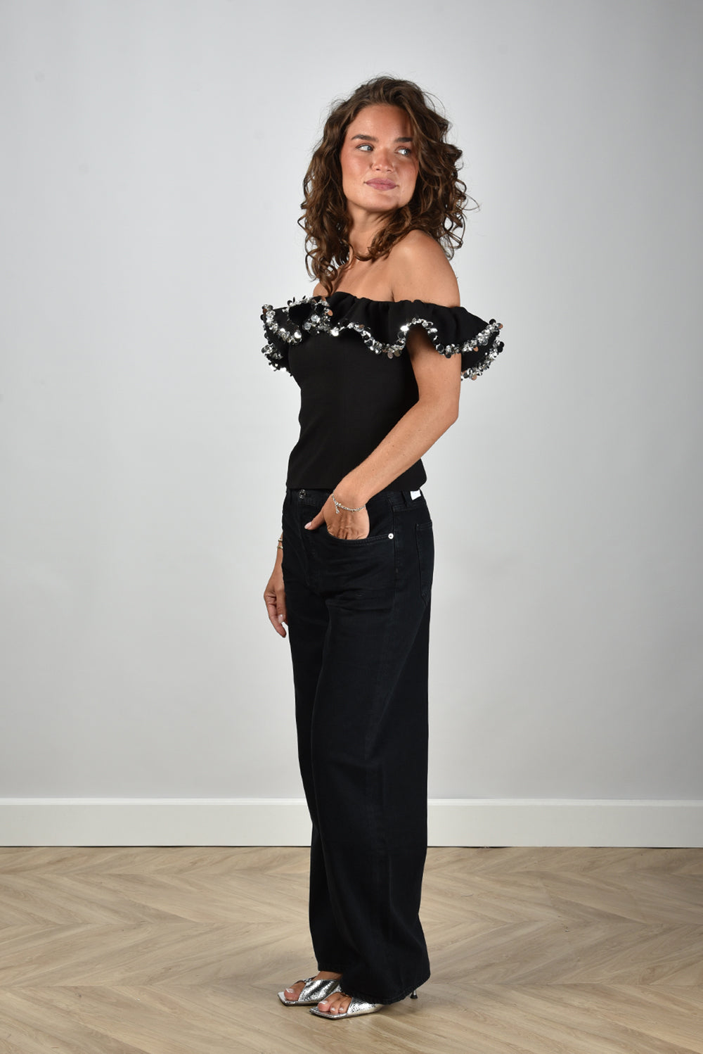 Our model Lise is 1,73m and 36/S/27. Deze top valt normaal op maat, we adviseren je je eigen maat te bestellen.