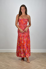 Farm Rio jurk met print strapless oranje