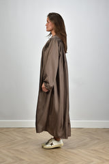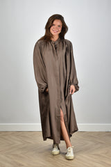 Rohe Jurk lang met pofmouw en knoopsluiting taupe