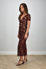 Our model Lise is 1,73m and Lise heeft maat 36/S/27. Deze jurk valt normaal op maat