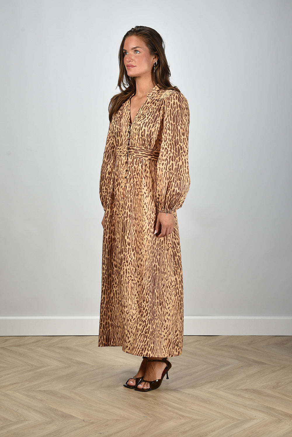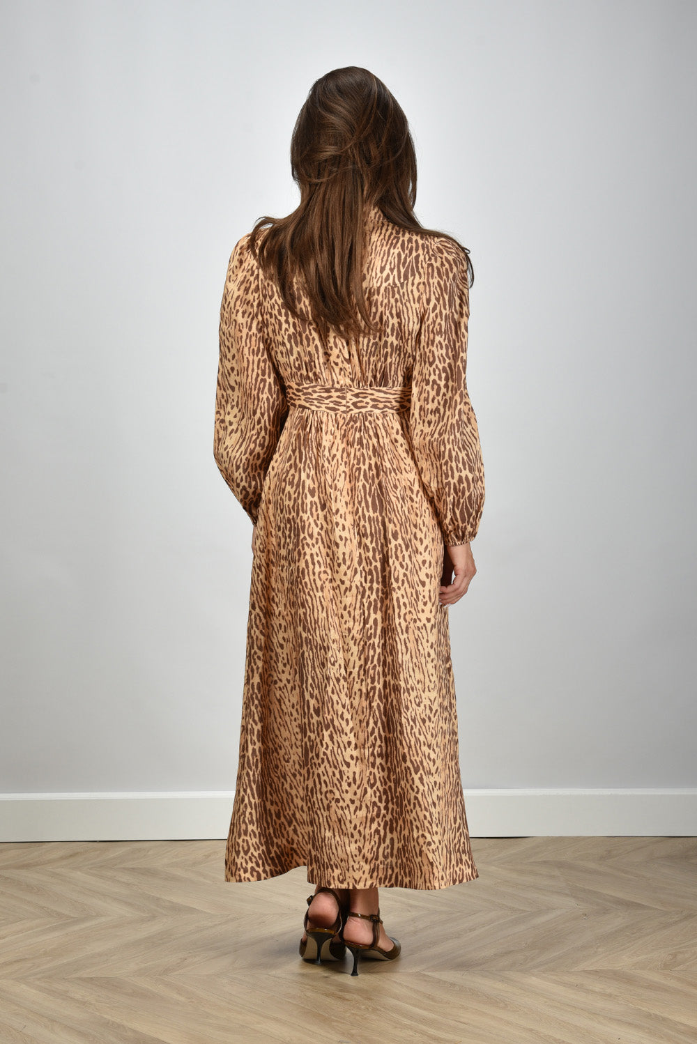 Zimmermann jurk Cascadian Plunge Midi met knoopsluiting dierenprint