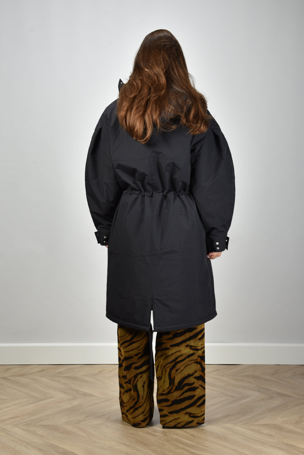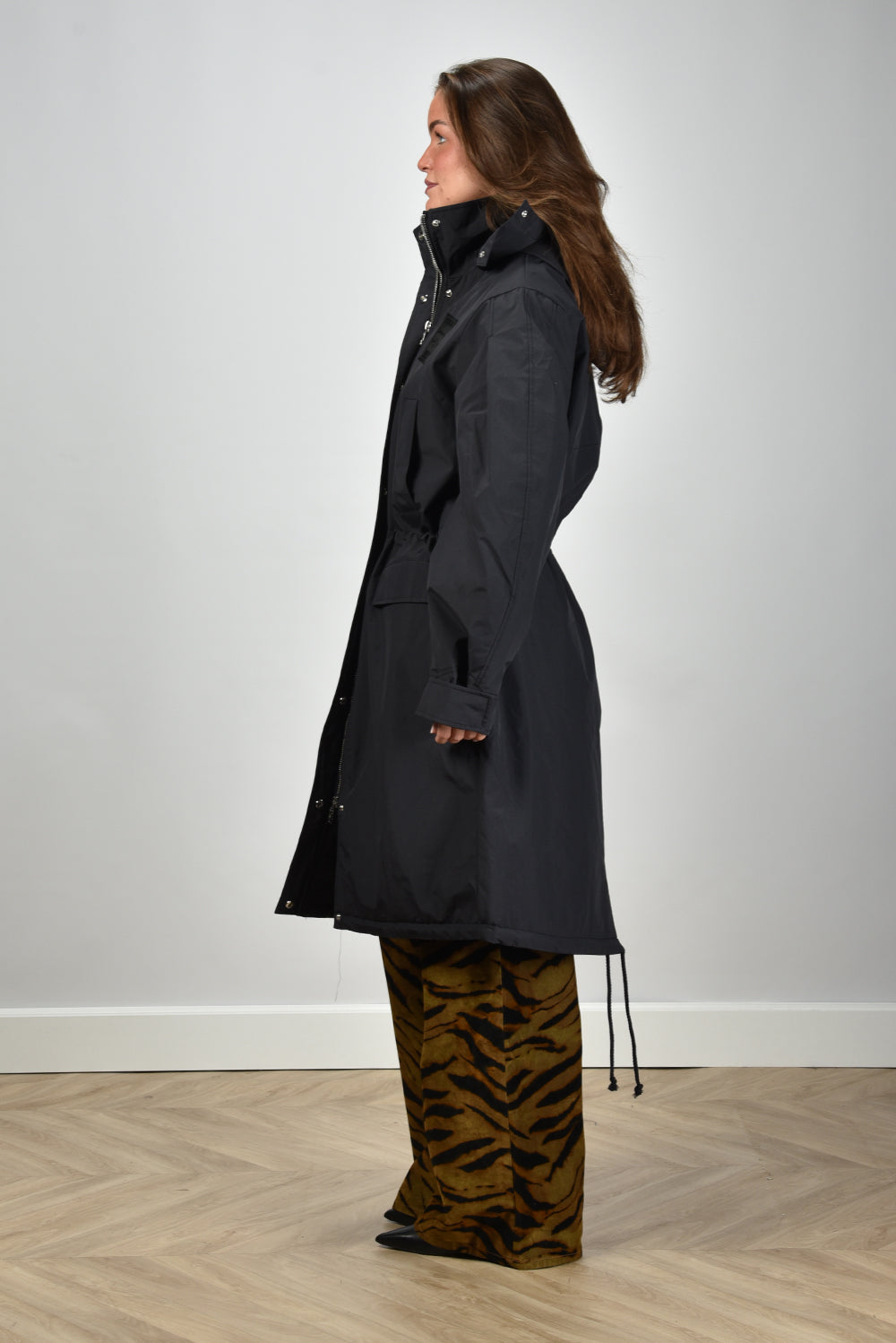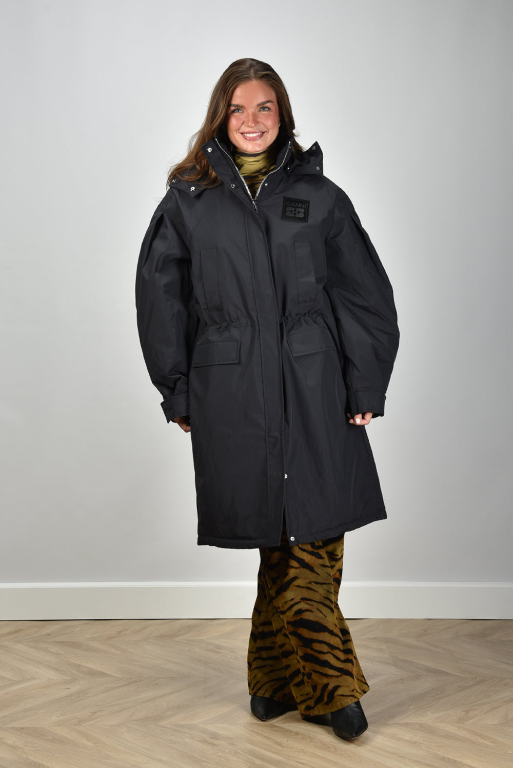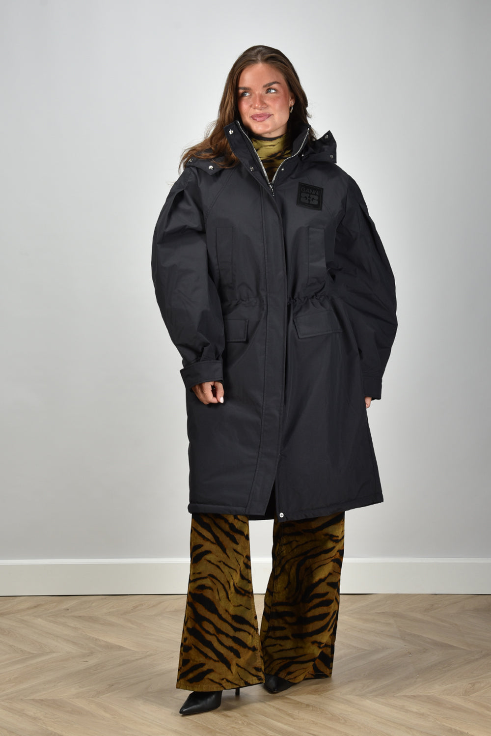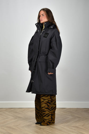 Ganni jas W1012 met trekkoord en capuchon zwart