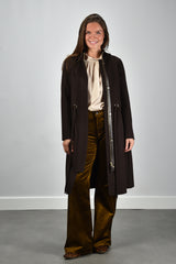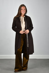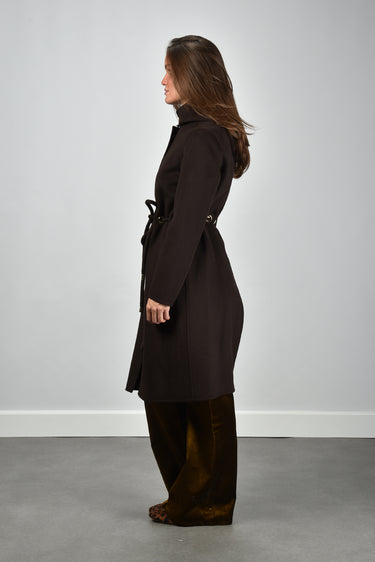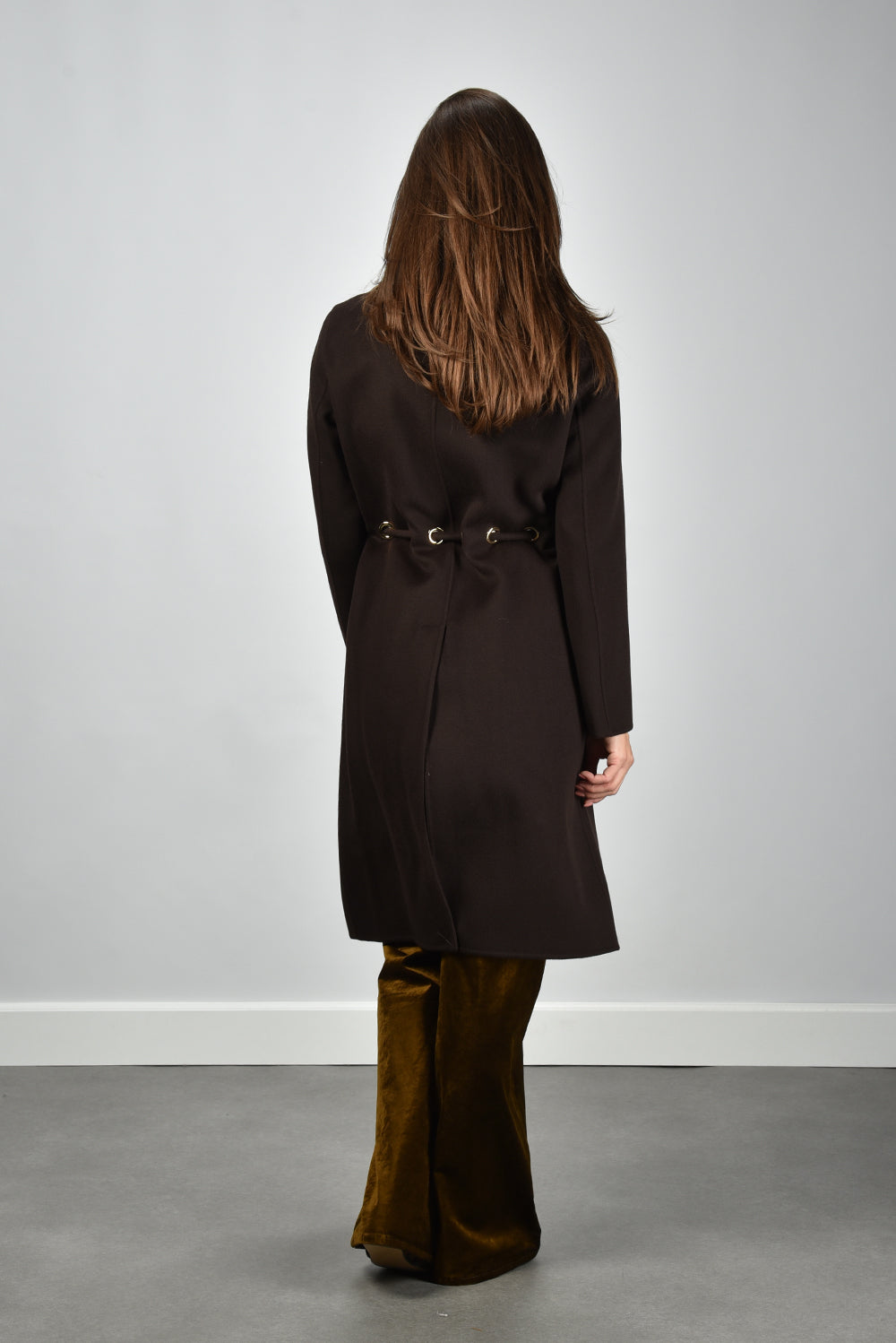 De jas BLITHE van Mackage in een diepe bruine coffeetint heeft een krachtige, elegante lijn die recht langs het lichaam valt. De lange snit reikt tot ruim over de knie en benadrukt het slanke silhouet. De goudkleurige ritssluiting met leren afwerking geeft het ontwerp een subtiel luxe karakter. In de taille zorgt een verstelbaar ceintuur met metalen oogjes voor extra vorm en detail. Gemaakt van 100% polyurethaan, stevig en glad van structuur met een lichte glans. Deze jas valt normaal op maat en combineert stijl met praktische bescherming. Draag hem met de Citizens of Humanity broek Kimberly 70s Flare voor een evenwichtige look met een moderne knipoog.