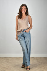 Our model Lise is 1,73m and Lise heeft maat 36/S/27. Deze top valt normaal op maat, we adviseren je je eigen maat te bestellen.