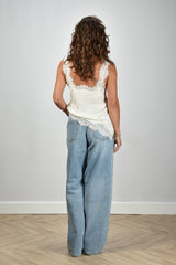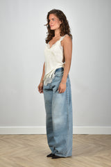 Our model Lise is 1,73m and Lise heeft maat 36/S/27. deze top valt normaal op maat
