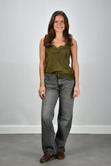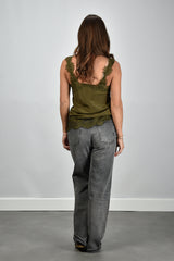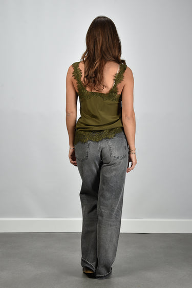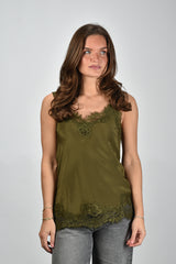 Gold Hawk zijden top met kant groen