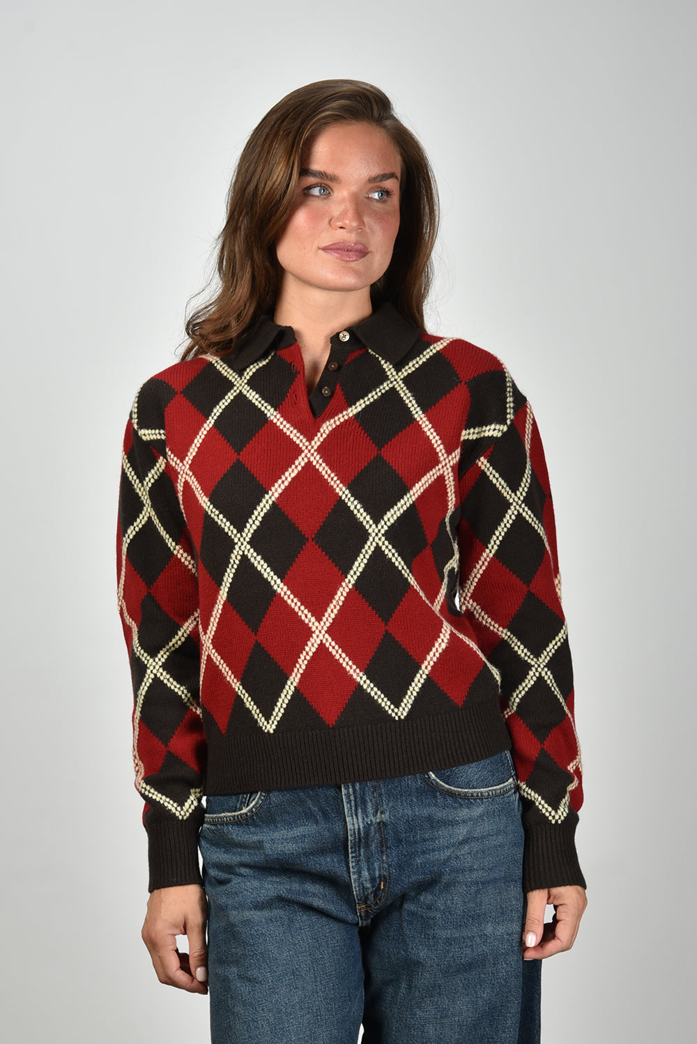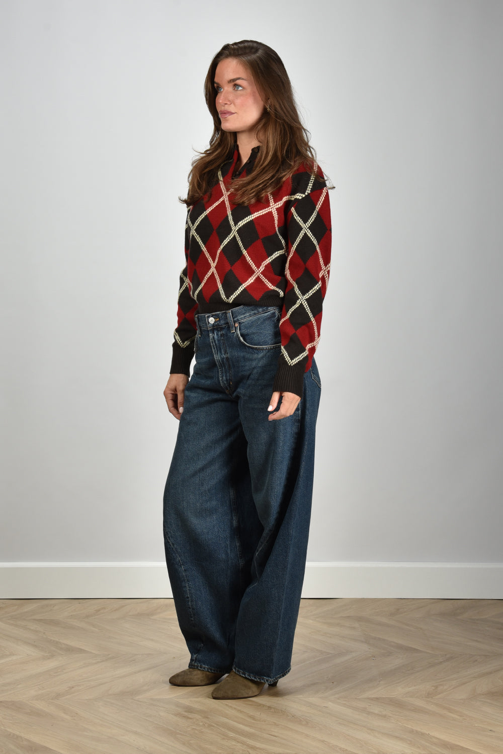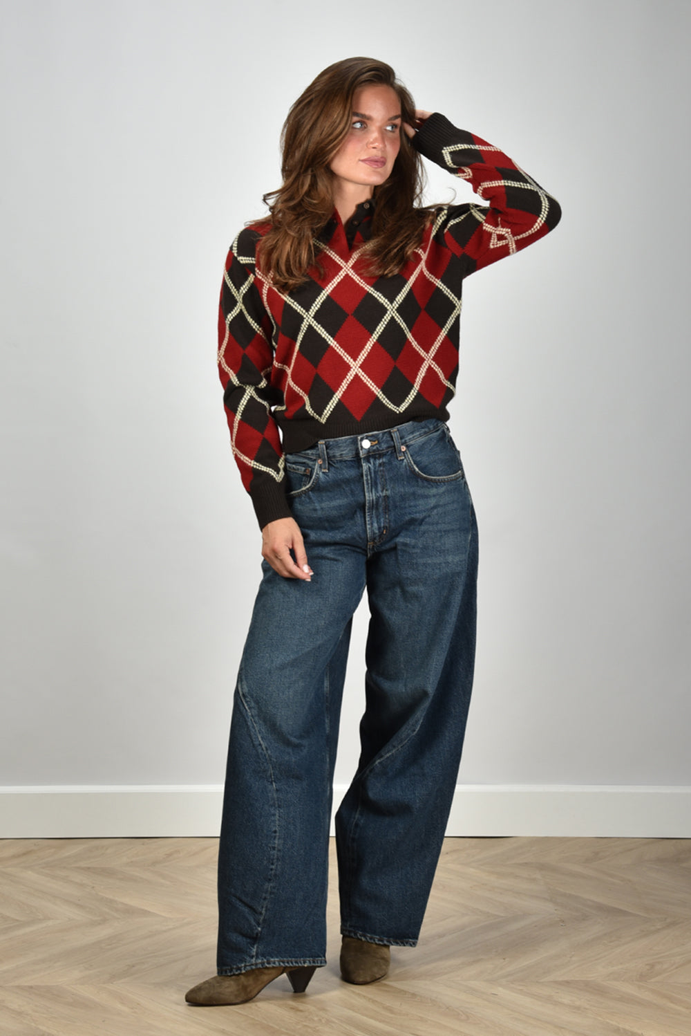 Guest In Residence trui W34327AM met ruit en polokraag rood