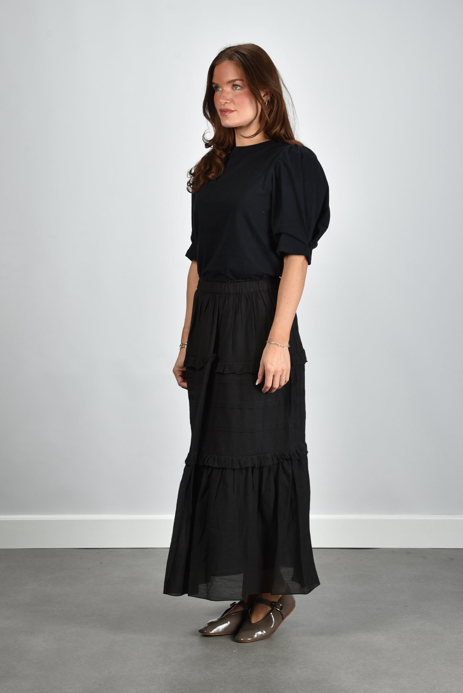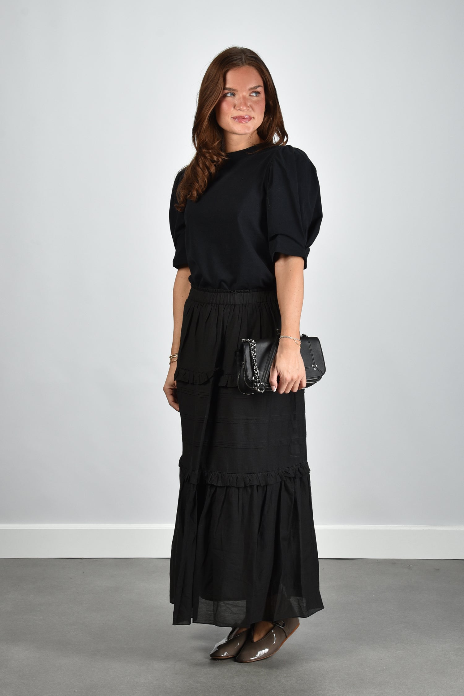 Our model Lise is 1,73m and Lise heeft maat 36/S/27. Deze rok valt normaal op maat