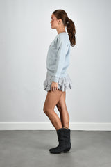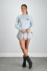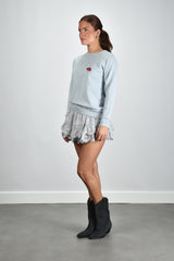 Our model Lise is 1,73m and Lise heeft maat 36/S/27. Deze trui valt normaal op maat