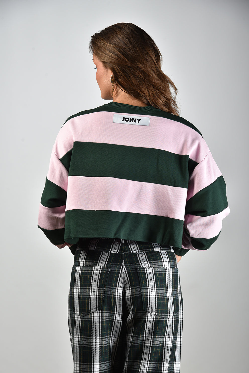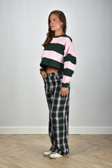 JOHNY sweater Derek gestreept roze