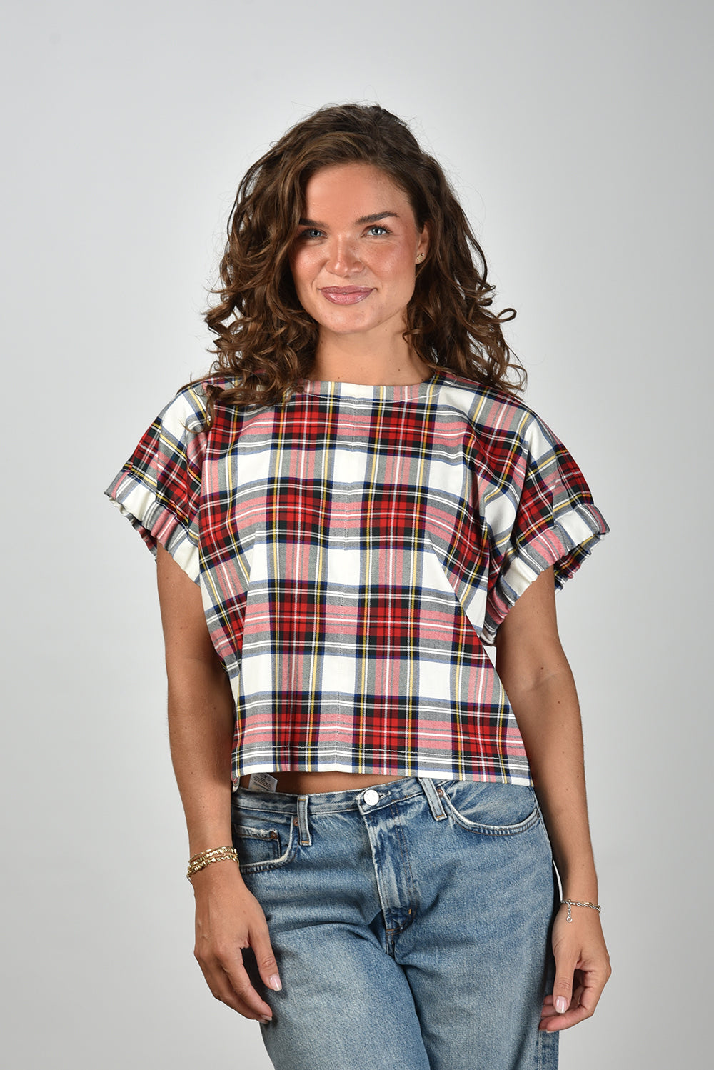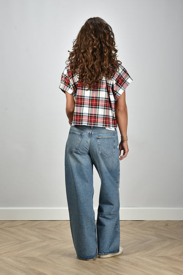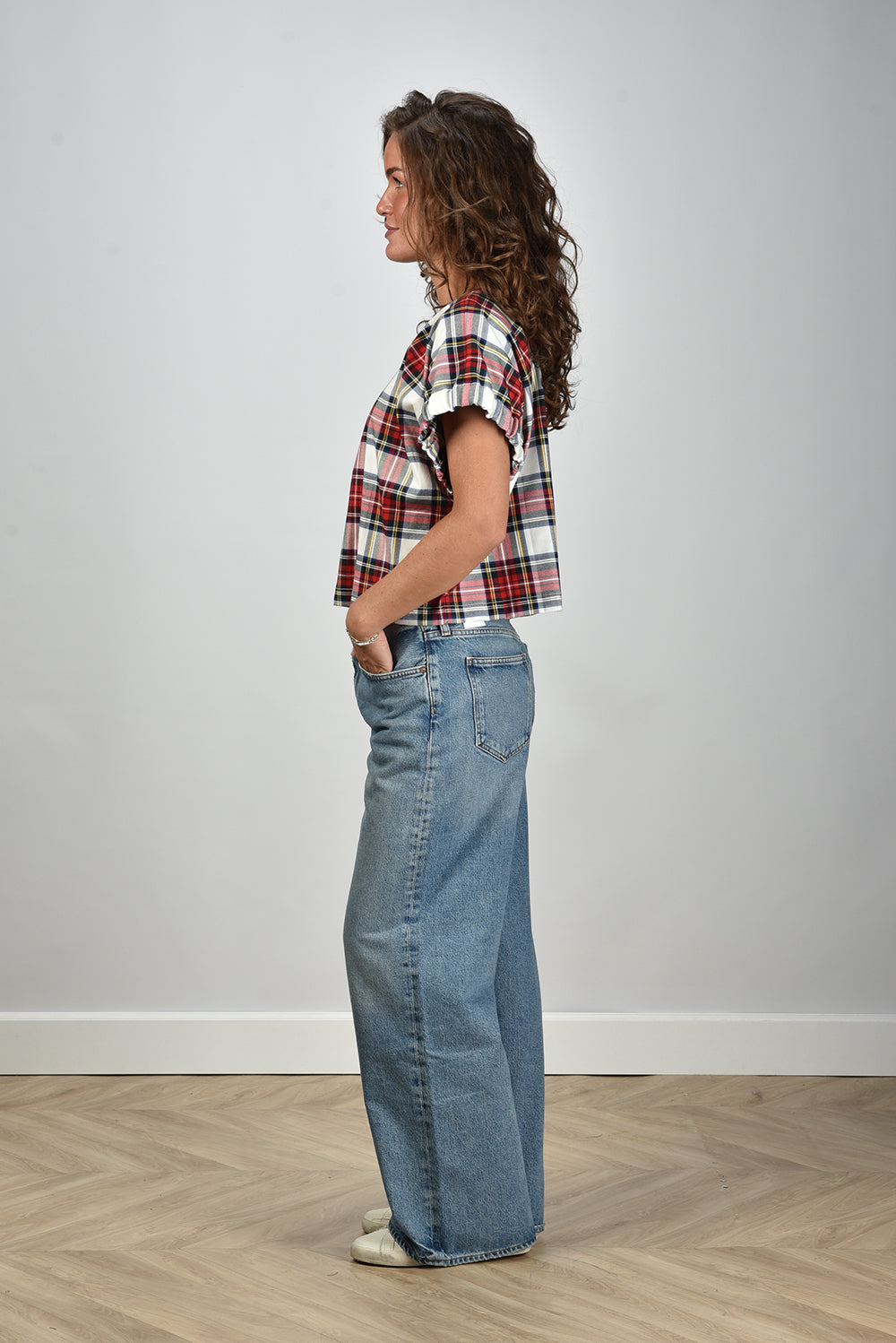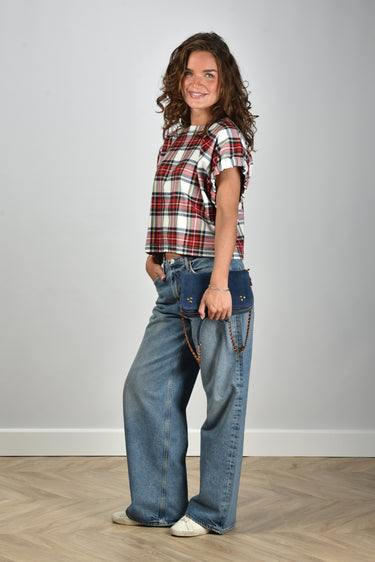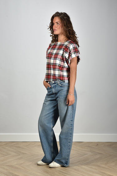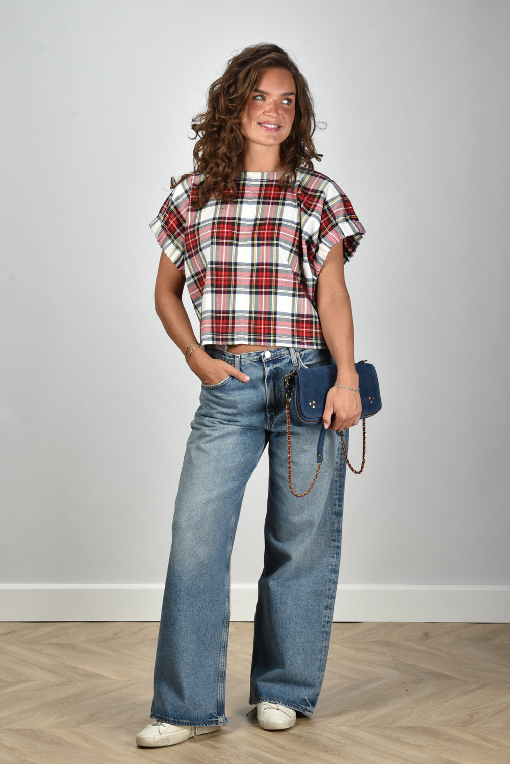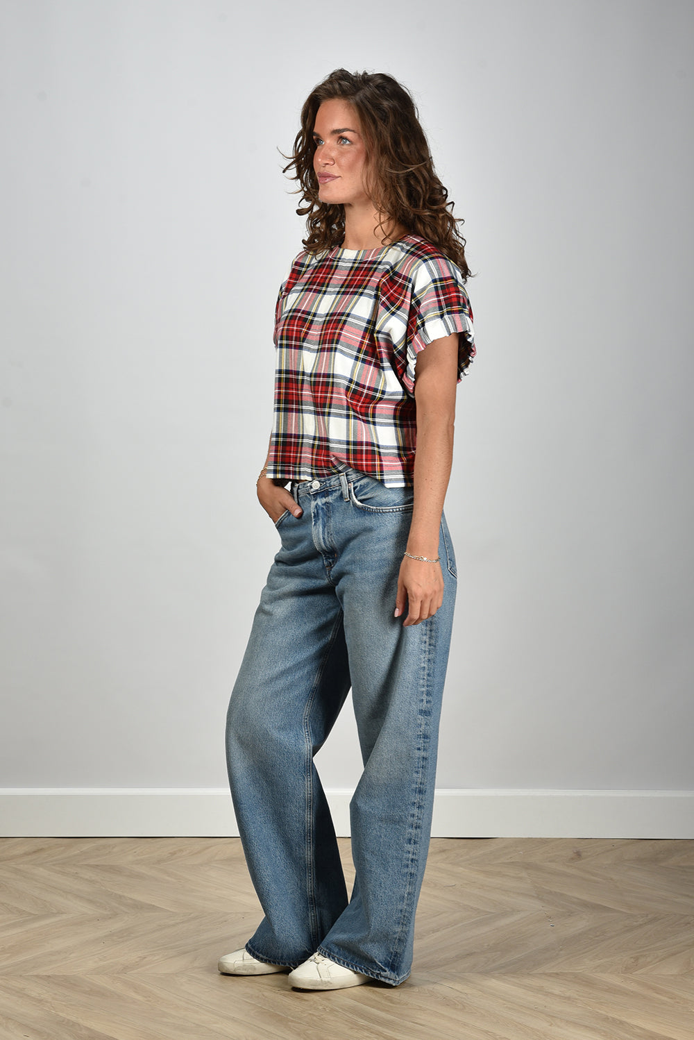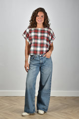 JOHNY top Pepper B geruit en met elastische mouwen rood
