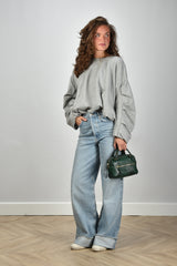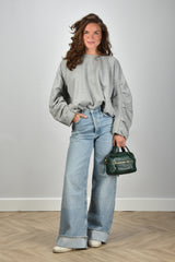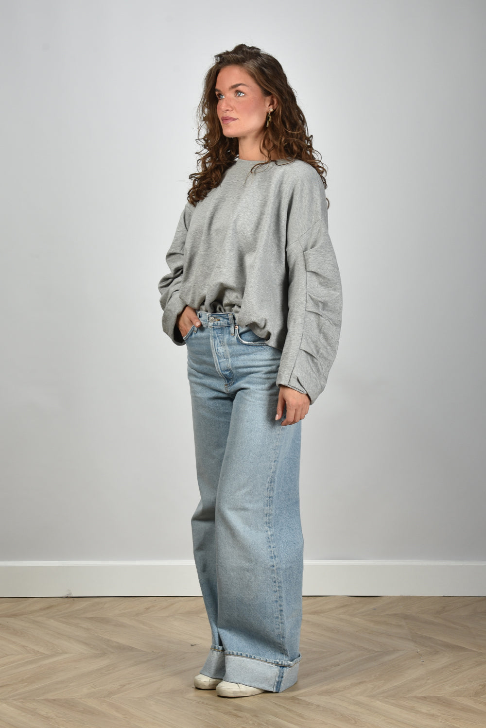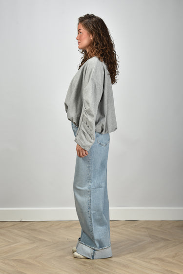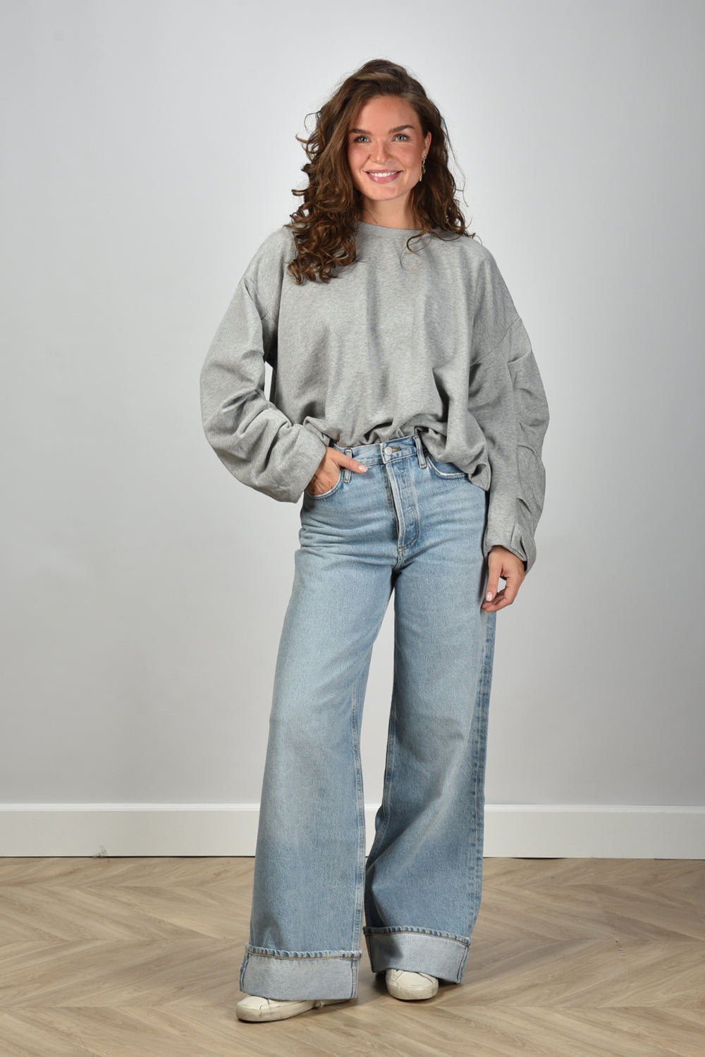 De trui Lauryn van JOHNY voelt direct stevig en soepel tegelijk. Gemaakt van 100% katoen, waardoor hij licht en ademend aanvoelt. De wijde mouwen geven de grijze trui een moderne, nonchalante vorm die moeiteloos past bij een denim of rechte pantalon. De kleur Lauryn grey heeft een koele toon die subtiel afsteekt tegen lichtere stoffen. Deze trui valt normaal op maat, dus de pasvorm blijft ontspannen zonder te groot te ogen. JOHNY brengt met deze trui hun typische mix van stoer en vrouwelijk: Belgisch design met een vleug Britse flair. Combineer hem met de Agolde jeans Dame voor een sterke, eenvoudige look met karakter.