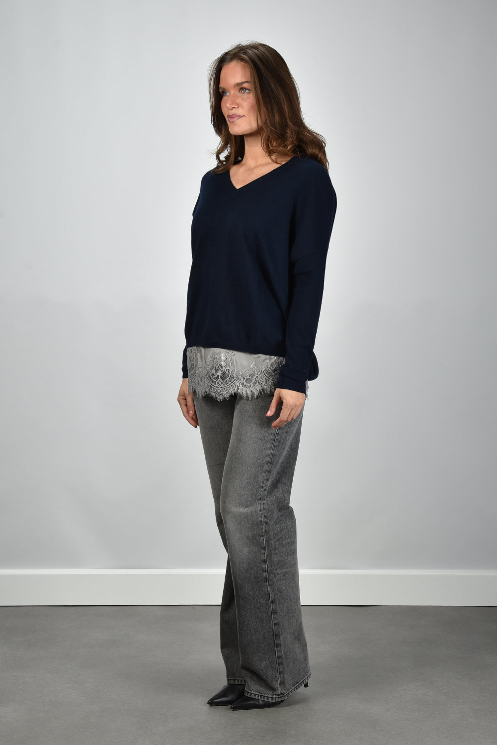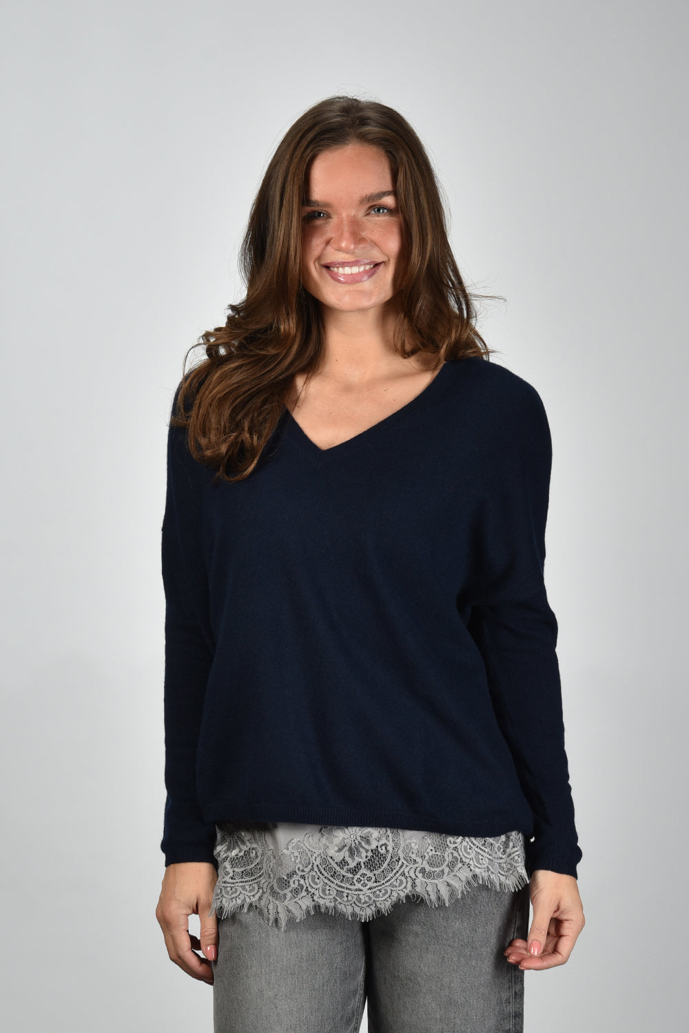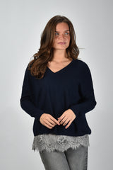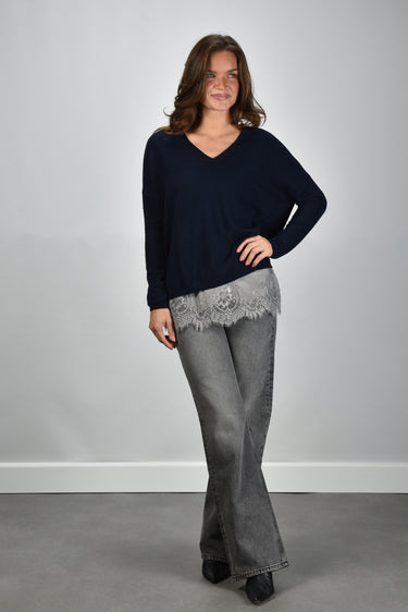 Les Tricots de Lea trui Monjakoe met v-hals blauw
