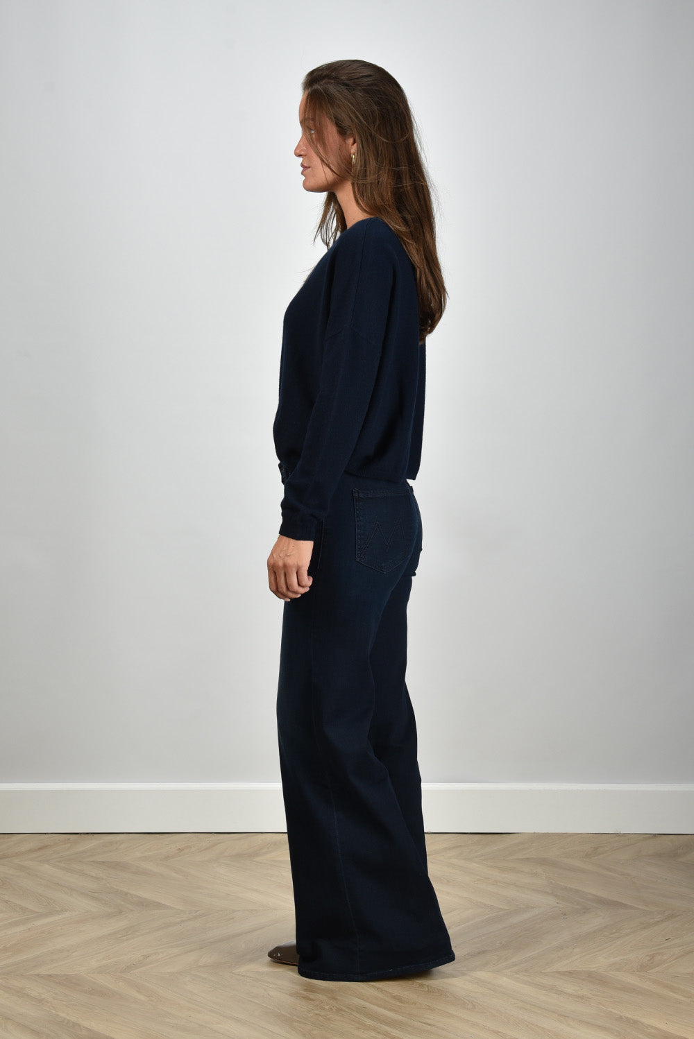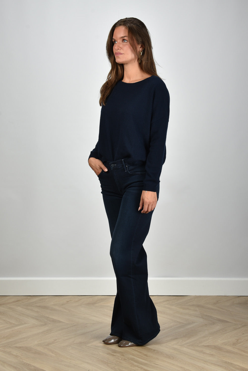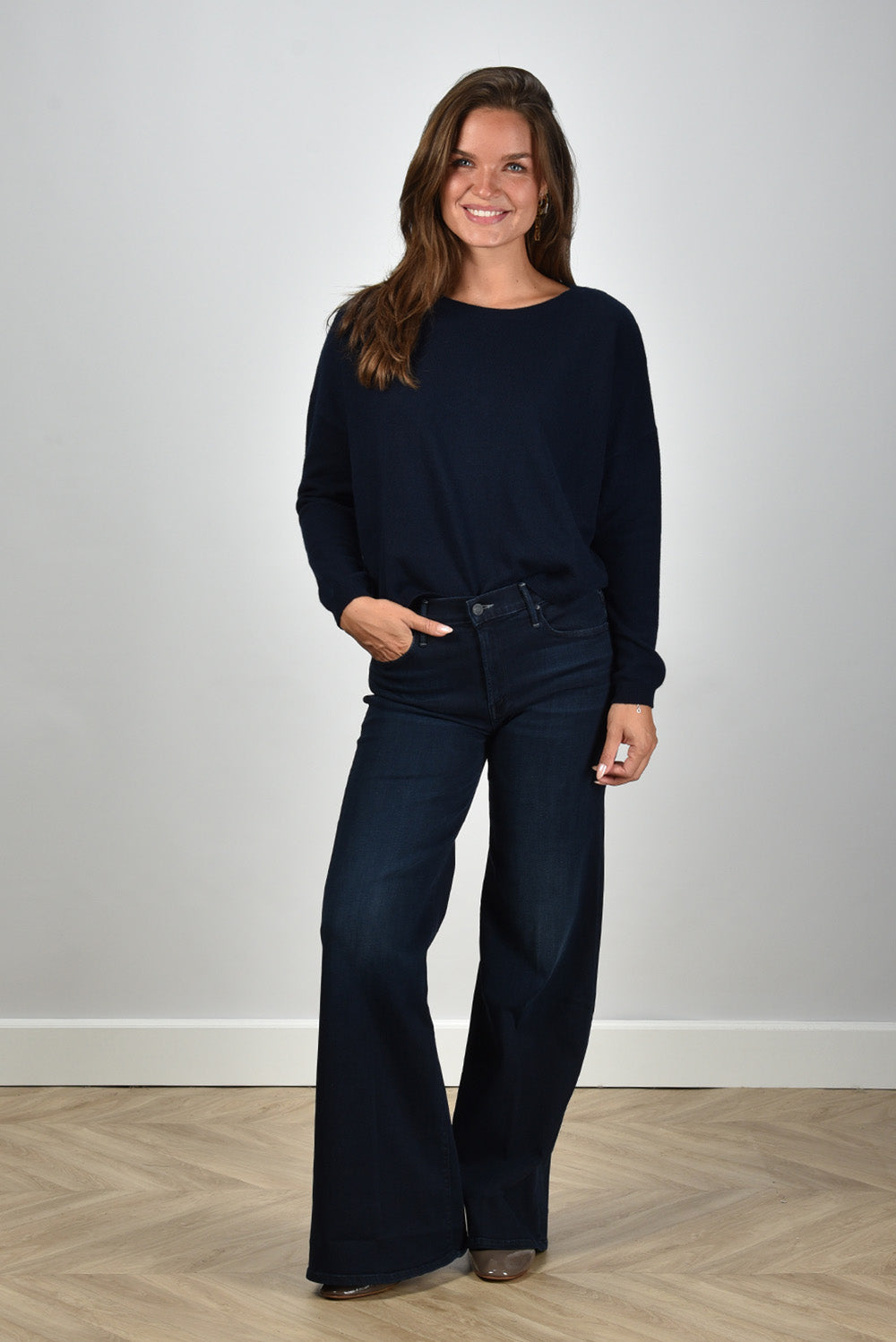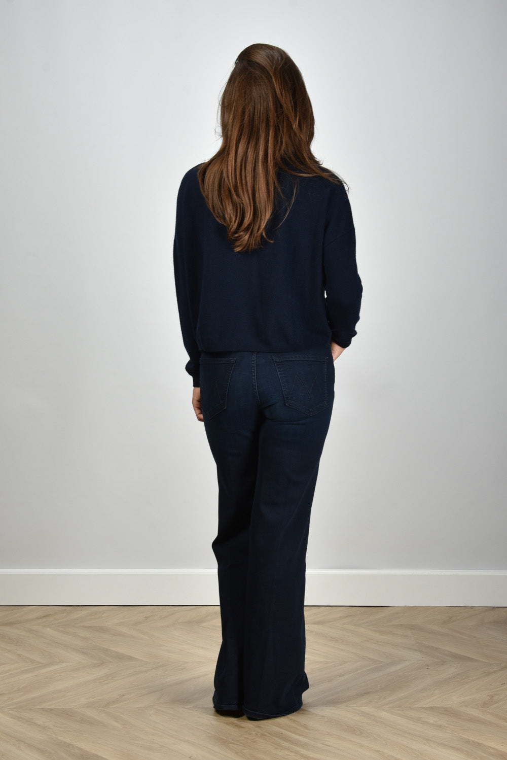 Our model Lise is 1,73m and Lise heeft maat 36/S/27. deze trui valt normaal op maat