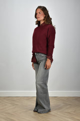 Our model Lise is 1,73m and Lise heeft maat 36/S/27. Deze trui valt normaal op maat