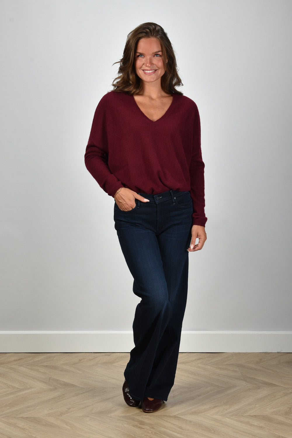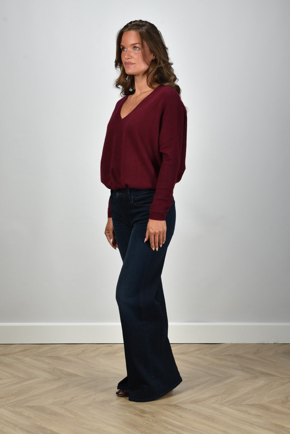 Our model Lise is 1,73m and Lise heeft maat 36/S/27. Deze trui valt normaal op maat