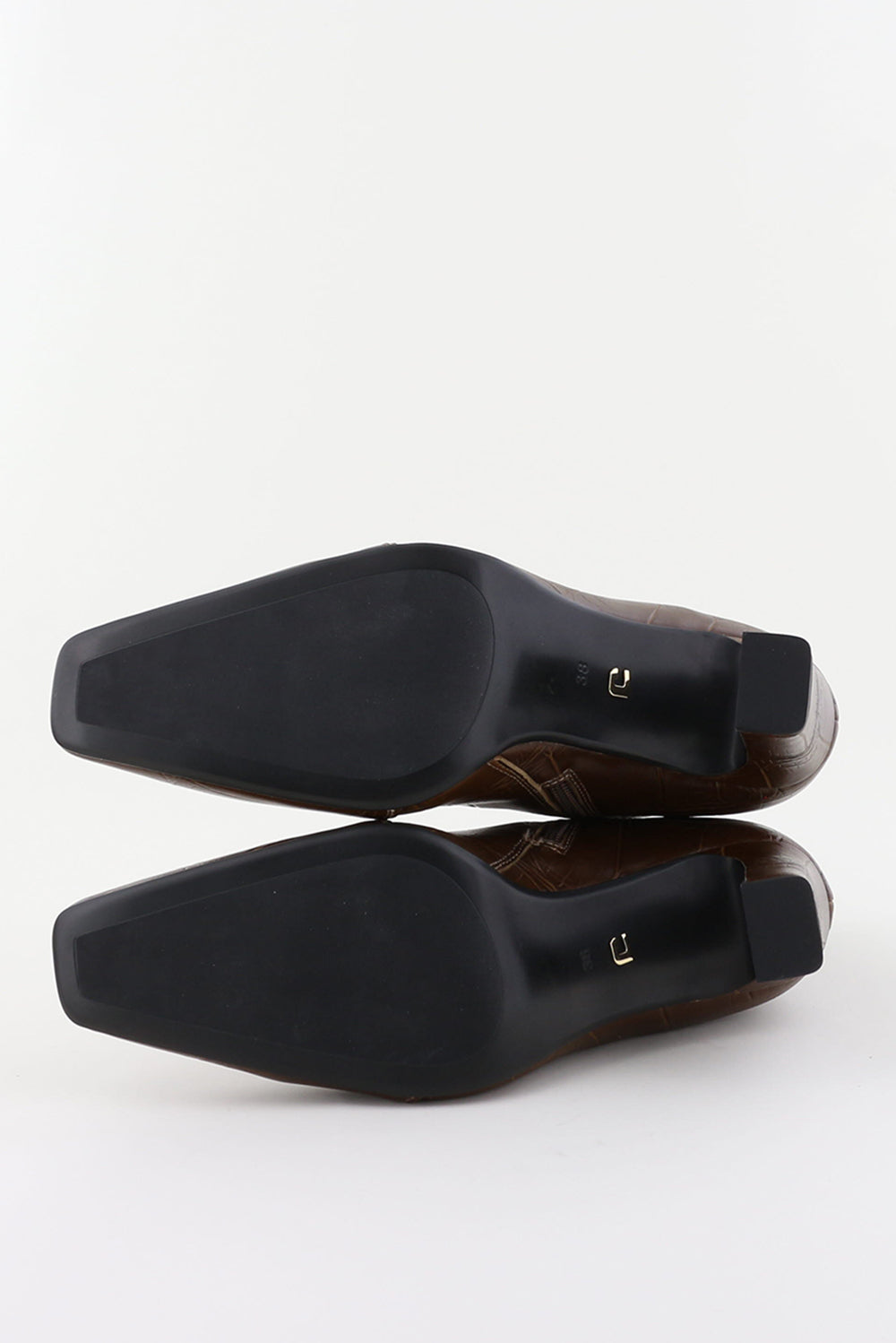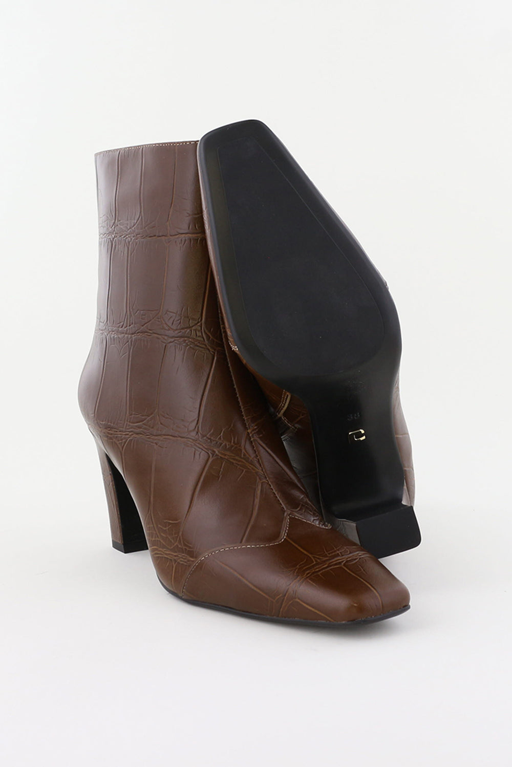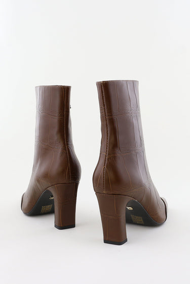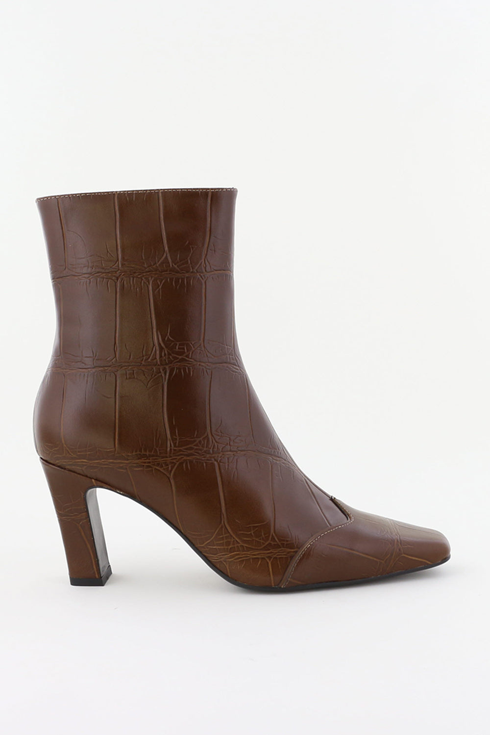 Lola Cruz enkellaarsjes met krokodillenprint en ritssluiting bruin