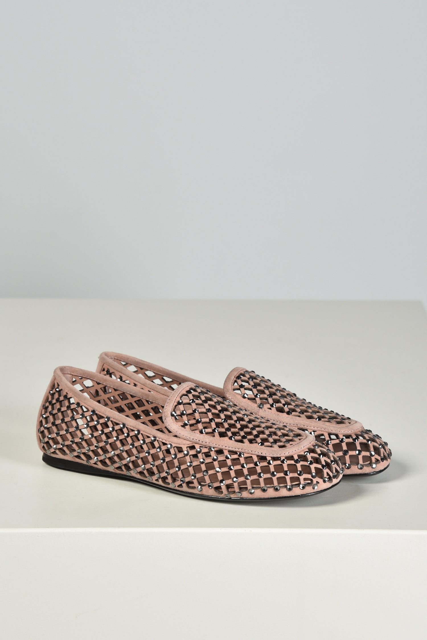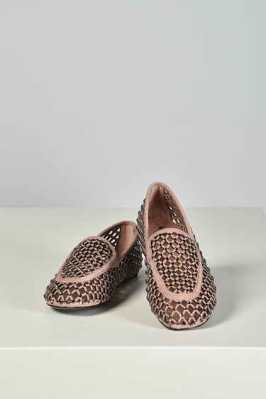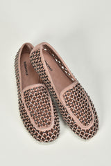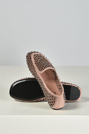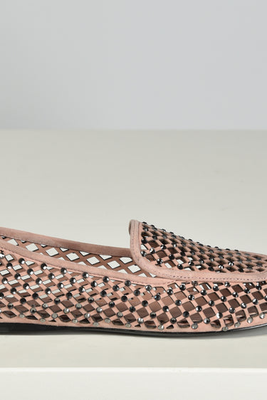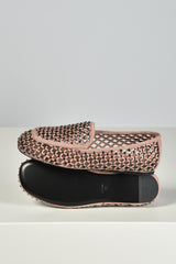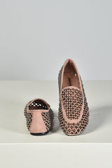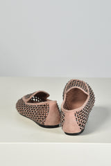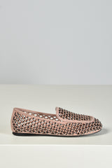 Hier zie je de loafers nude van Lola Cruz, een lichte instapper met een opengewerkt patroon dat luchtig oogt en subtiel structuur geeft. De suede basis voelt stevig aan en wordt onderbroken door kleine strassdetails die net genoeg glans toevoegen. De contrasterende bies langs de rand zet het silhouet helder neer. Ze vallen normaal op maat. Lola Cruz staat bekend om ontwerpen die spelen met vorm en materiaal, steeds met aandacht voor kwaliteit en een herkenbare signatuur.