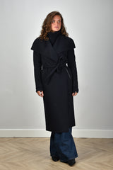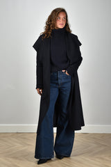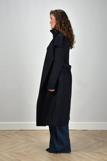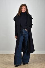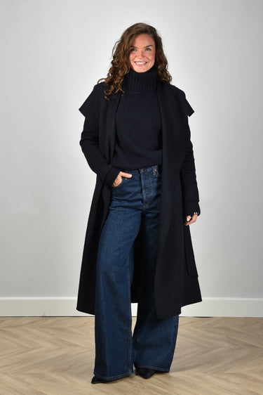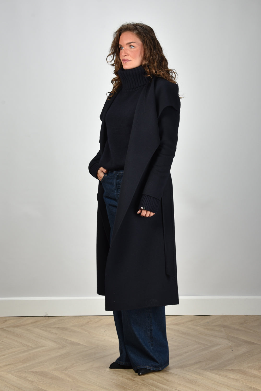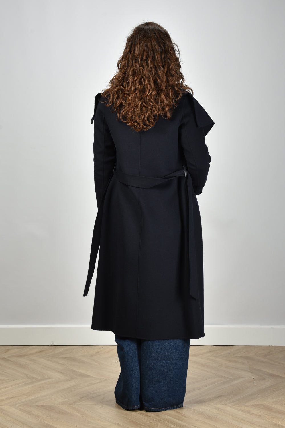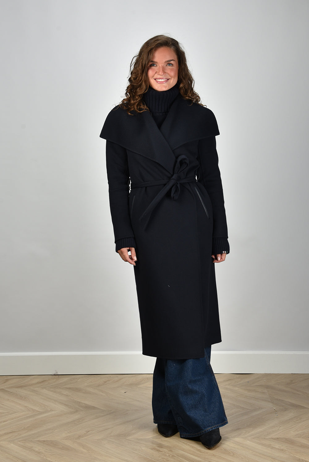 De jas MAI-CN van Mackage is een stijlvolle lange mantel met een openvallend silhouet en brede revers. De lengte valt elegant over de knieën en de ceintuur in de taille zorgt voor een subtiel gedefinieerde vorm. De diepe navy kleur geeft de jas een rustige, moderne uitstraling. Door het gebruik van 100% polyurethane is de buitenkant goed bestand tegen wind en lichte regen. De pasvorm valt normaal op maat, waardoor hij prettig draagt over een trui of blazer. Combineer de jas met de Extreme Cashmere trui Oversize Xtra 20 navy voor een zachte laag eronder en een luxe uitstraling. Met het doordachte ontwerp laat Mackage opnieuw zien waarom het merk bekendstaat om outerwear waarin stijl en functionaliteit mooi samenkomen.