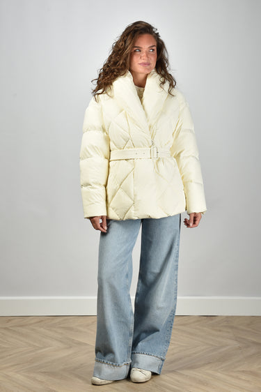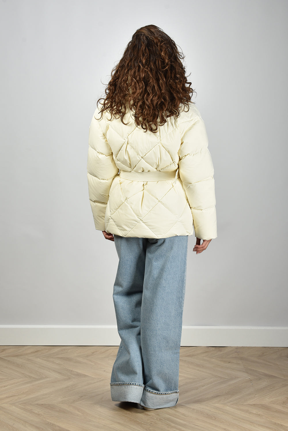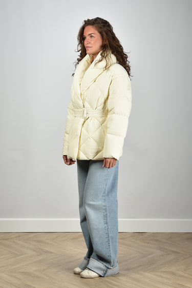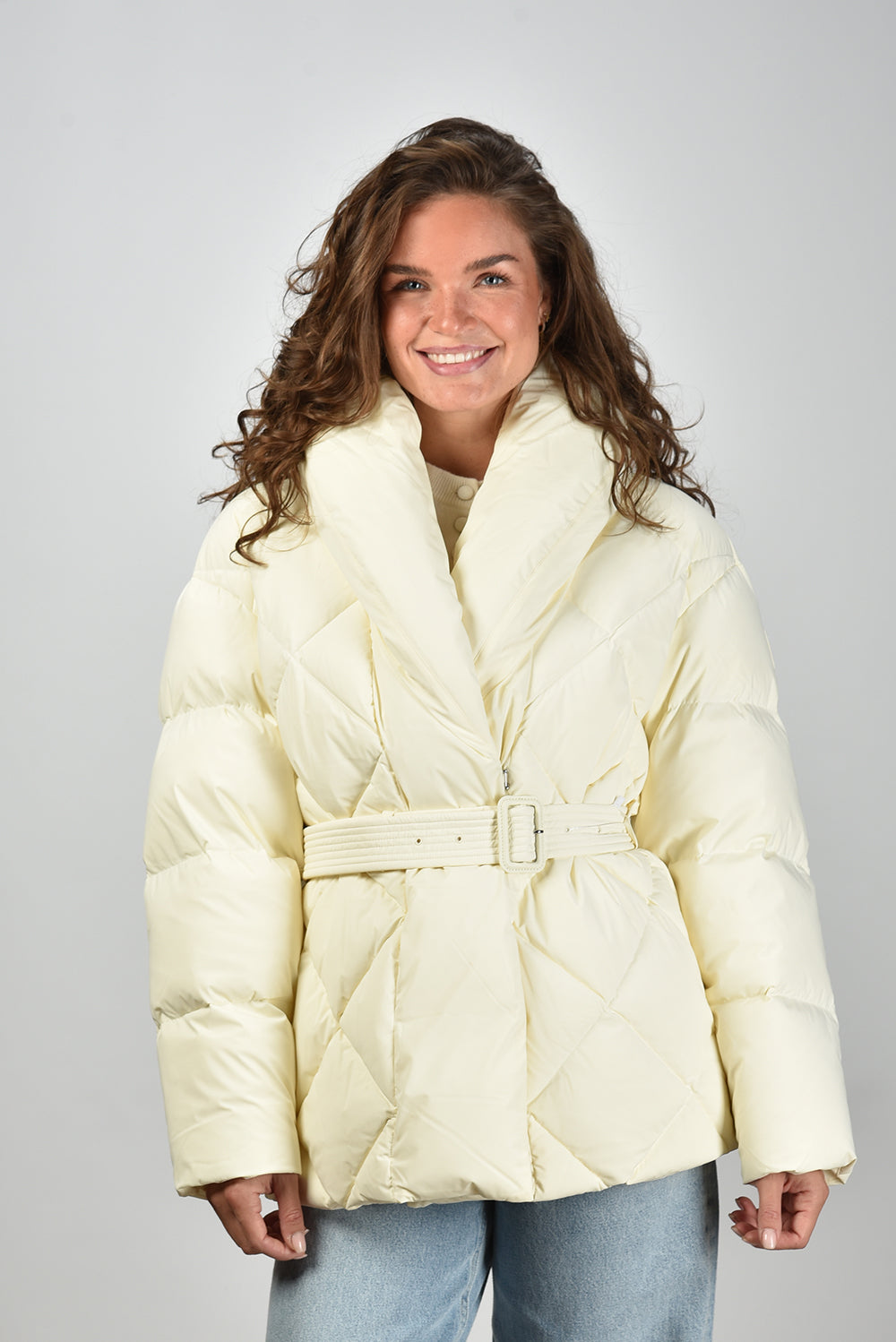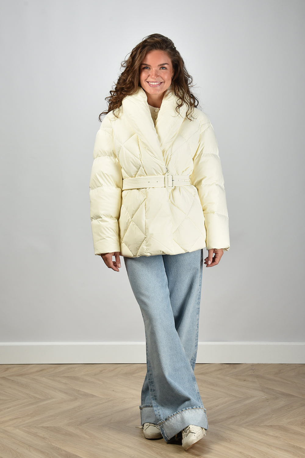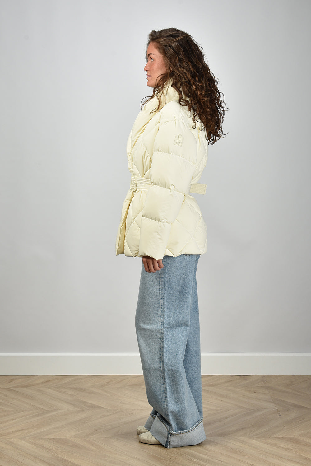 De jas OLIVE van Mackage in crème heeft een strak, vrouwelijk silhouet met een ceintuur die je taille mooi accentueert. De gladde stof voelt stevig en licht aan, dankzij de mix van nylon en spandex die subtiele rek geeft bij beweging. De pasvorm valt normaal op maat, wat het makkelijk maakt om er ook een dikkere trui onder te dragen. De cream tint oogt fris en rustig, perfect voor een verfijnde city-look. Combineer de jas met een Agolde jeans voor een moderne, casual styling. Mackage staat bekend om hun doordachte ontwerpen waarin mode en functionaliteit samenkomen. Elk detail is precies uitgewerkt, van de vorm van de kraag tot de soepele sluiting.